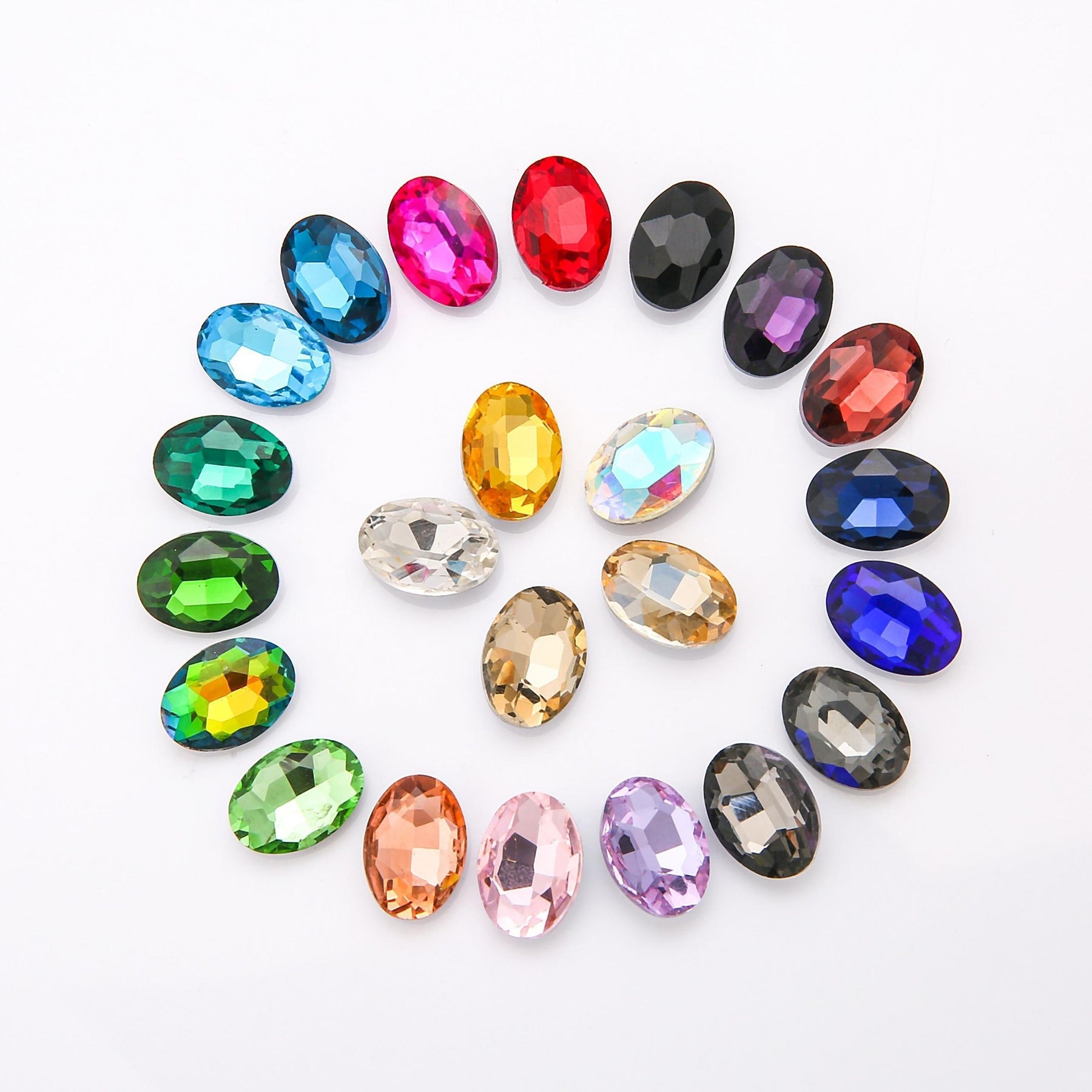 Get a bag of 20 pointed bottom oval glass crystal rhinestones to use as DIY phone stickers or clothing accessories. Add a touch of sparkle to your creations with these special-shaped gems.