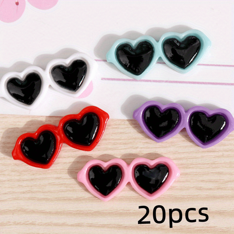 20pcs Resin Heart Shaped Glasses Patch for DIY Toy Doll Keychain Decoration