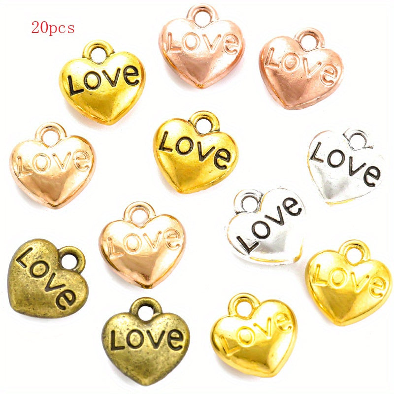 Create beautiful jewelry with this set of 20 retro mini heart pendants in golden and silver colors. Ideal for necklaces, bracelets, and art crafts.