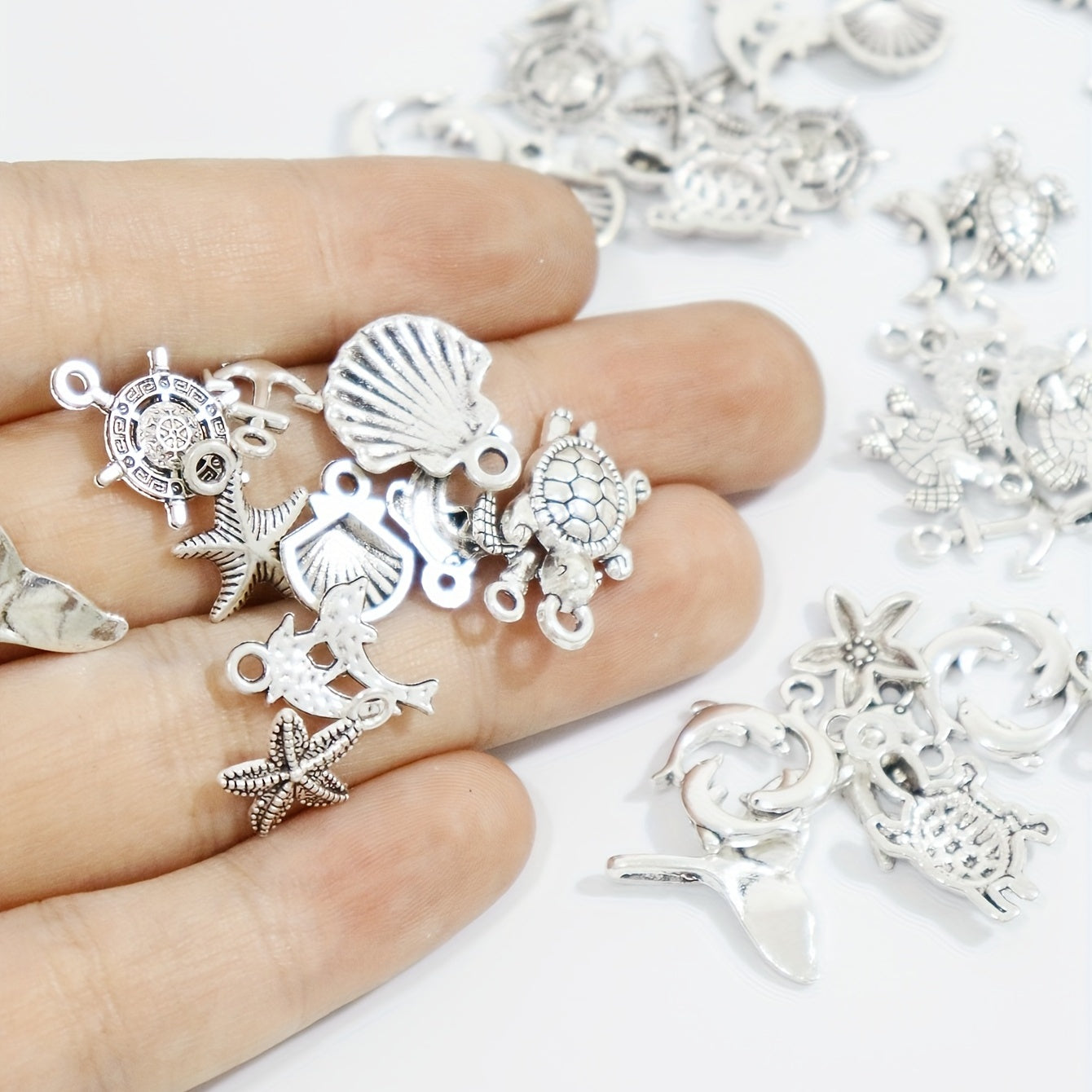 Enhance your jewelry-making projects with these 20pcs retro silver ocean animals pendants charms. Perfect for DIY jewelry making and art craft projects.