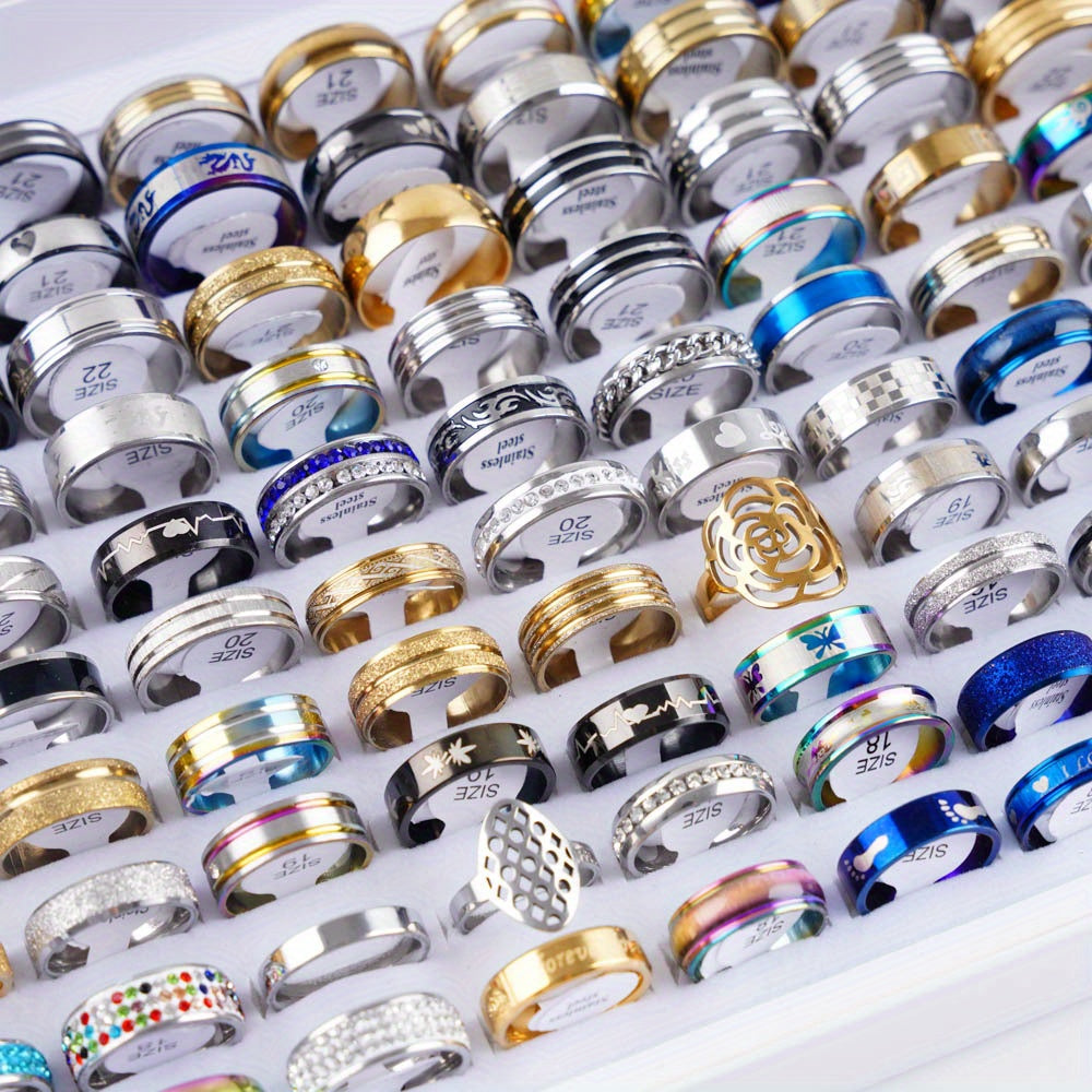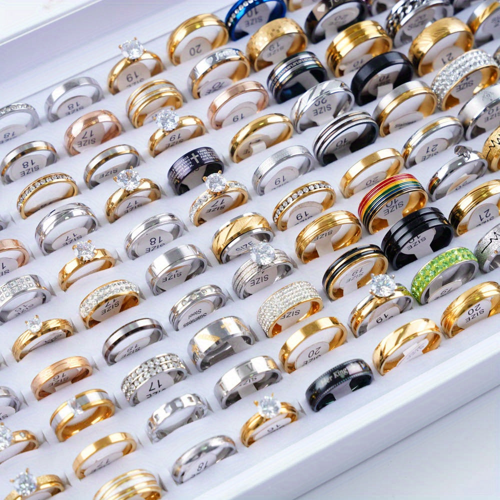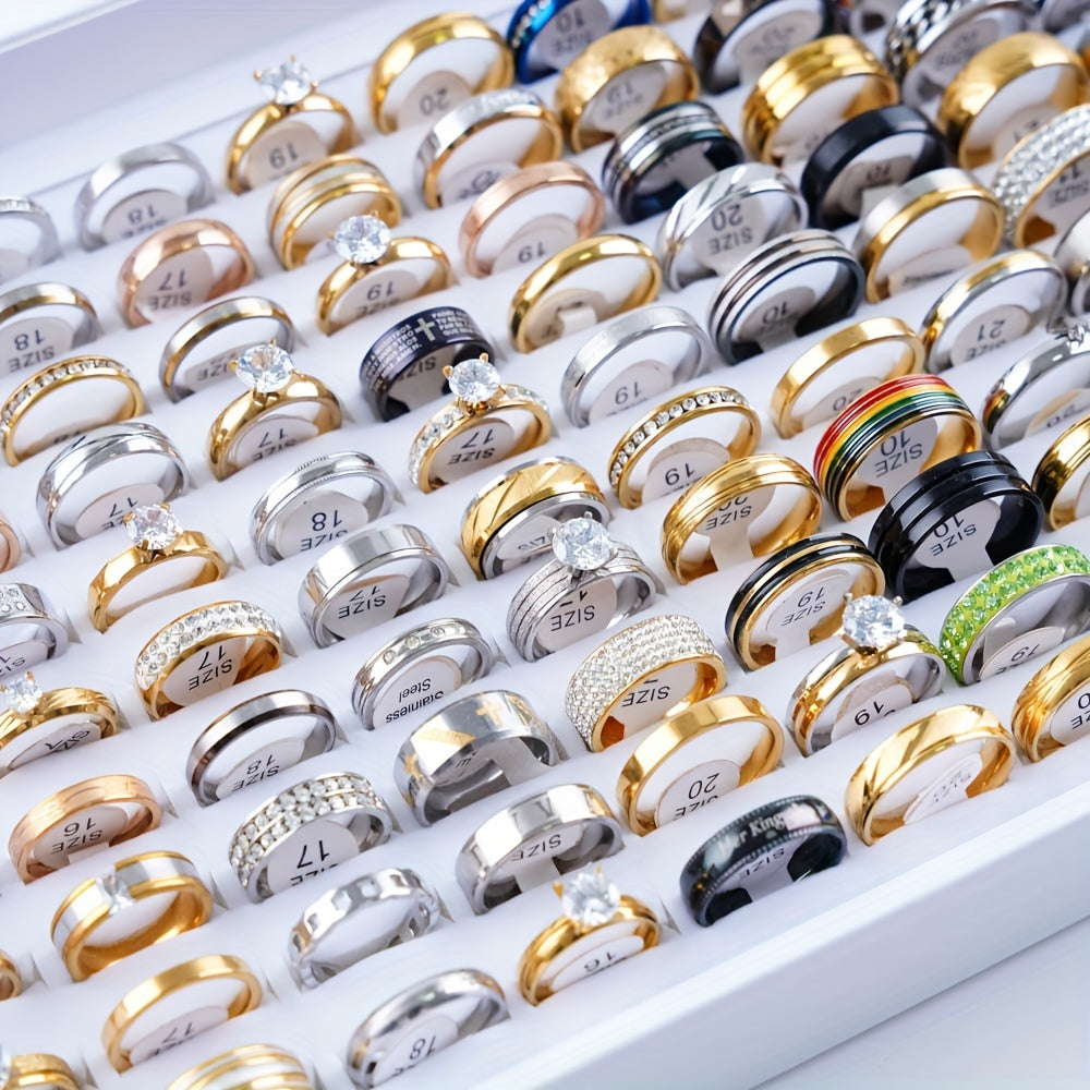 Elegant and colorful rhinestone rings made of stainless steel, suitable for both men and women. Perfect for parties and events.