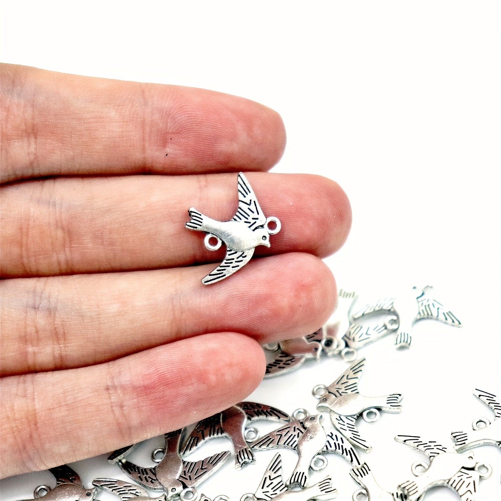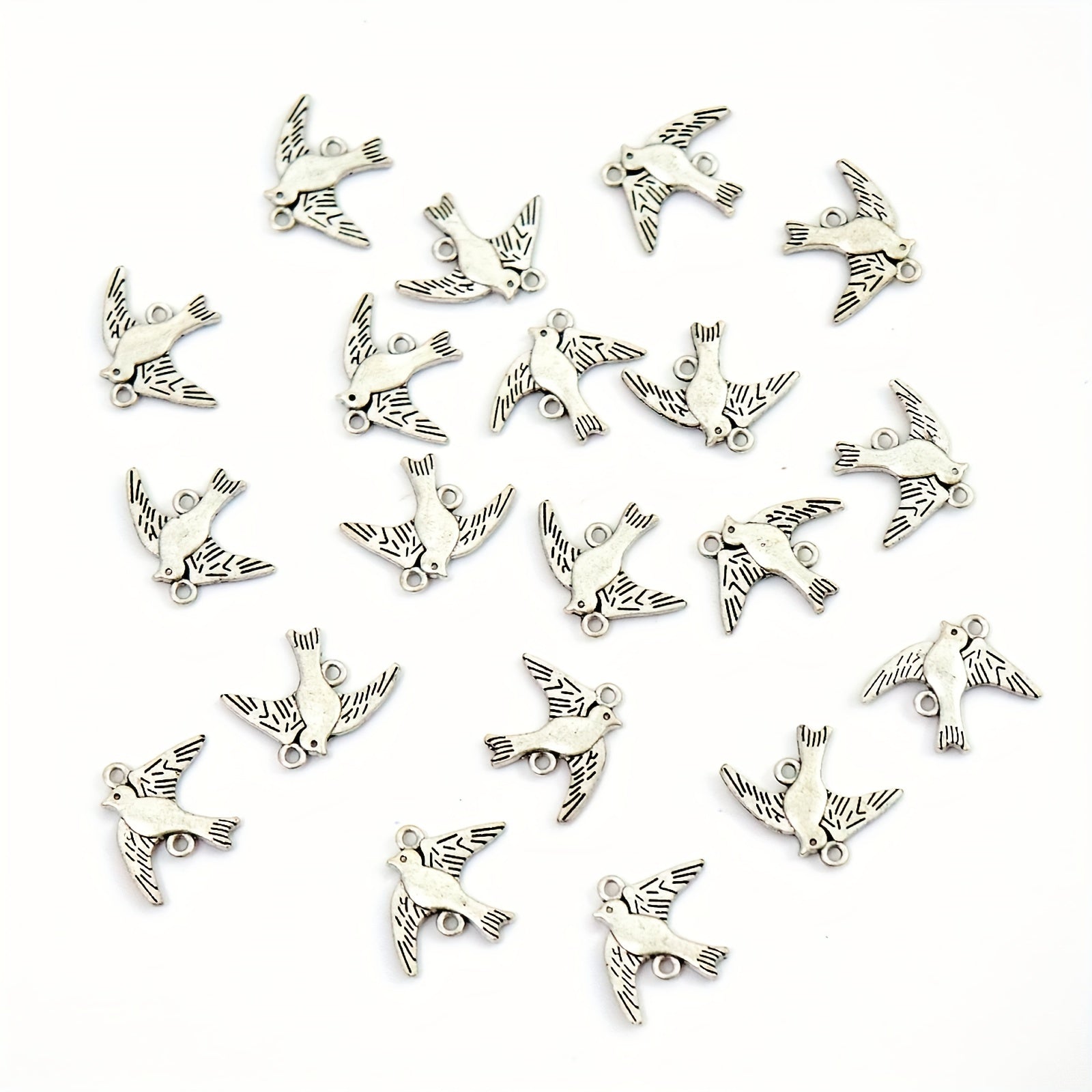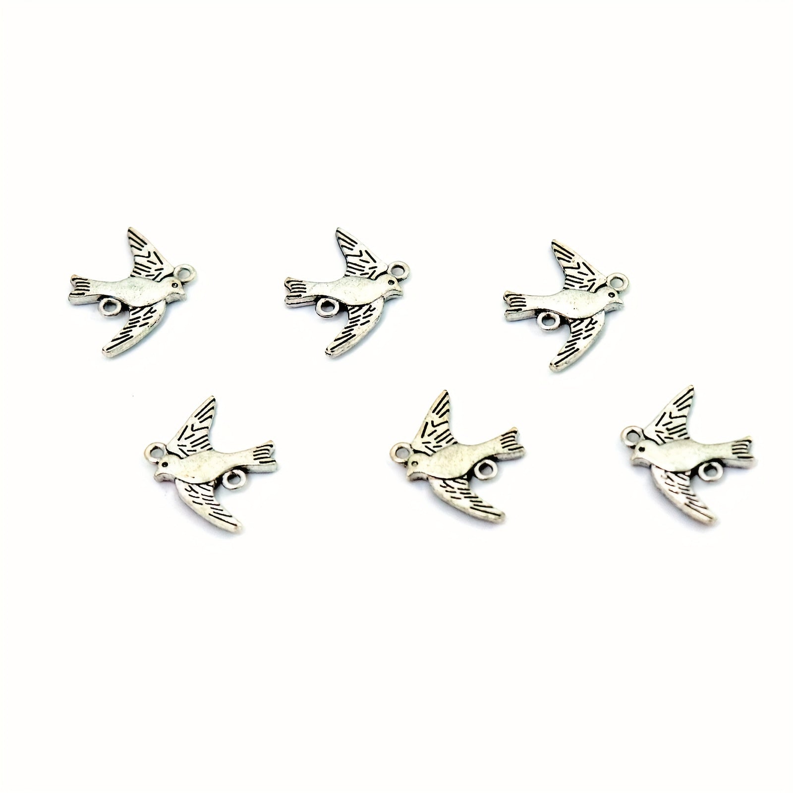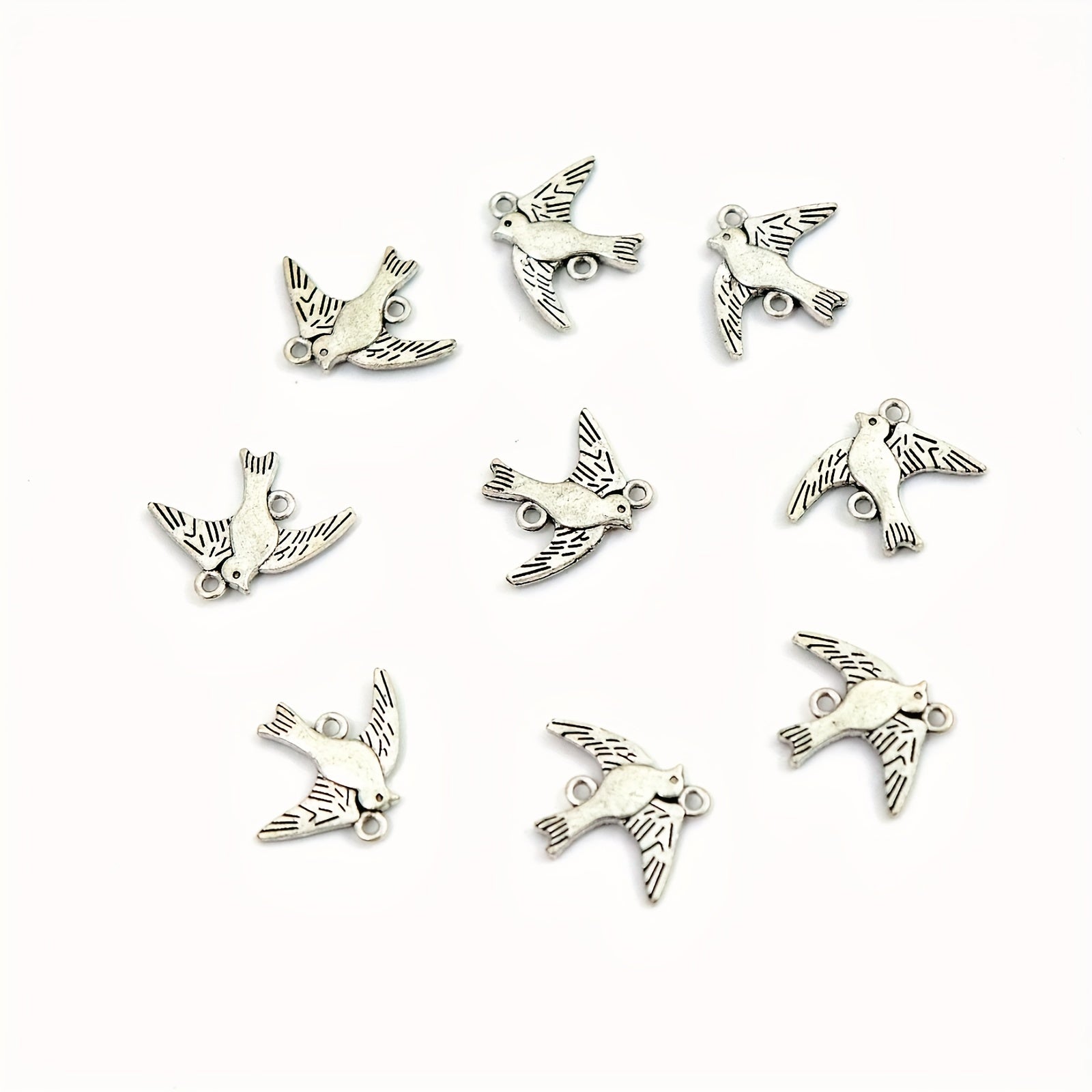 Add a touch of nature to your jewelry creations with these silver bird pendants. Perfect for necklaces and bracelets, these pendants are made of zinc alloy and feature double holes for easy attachment.