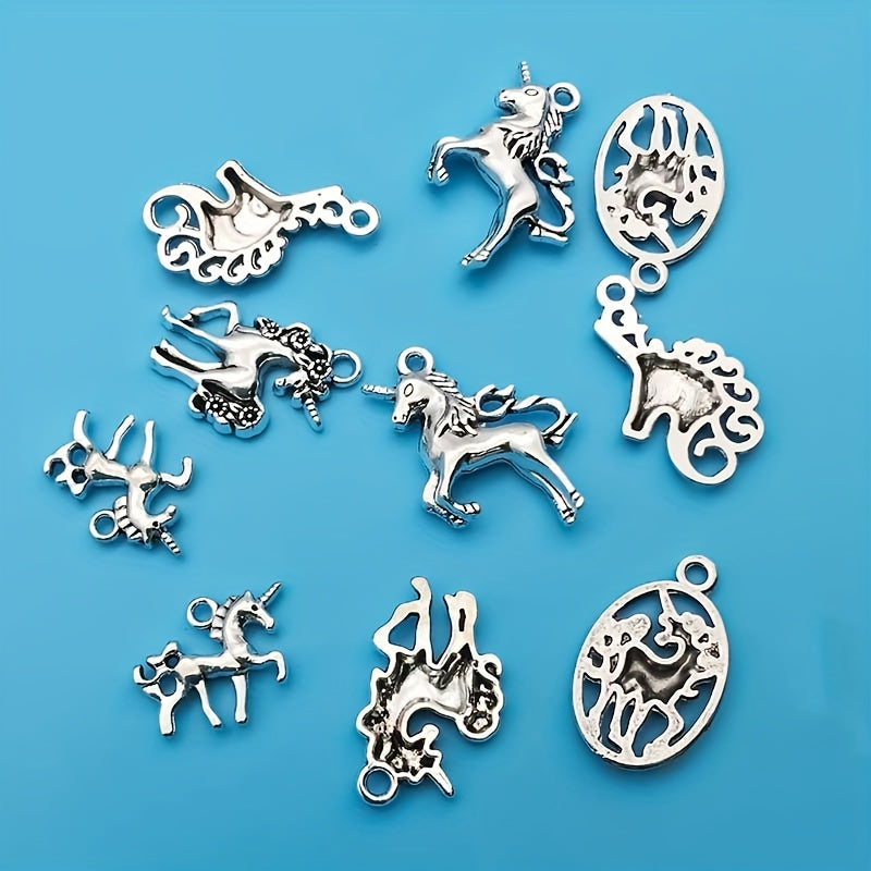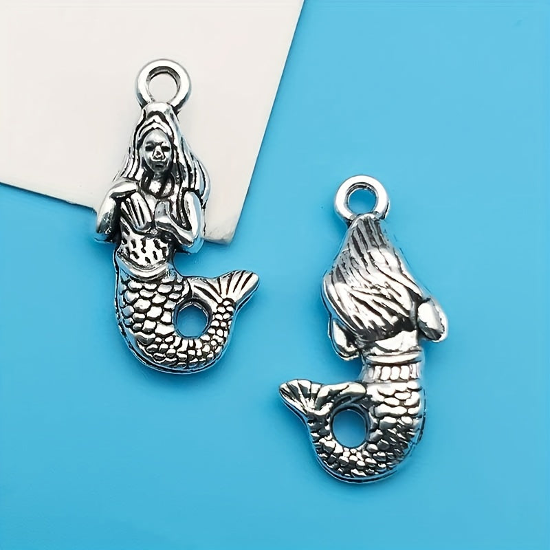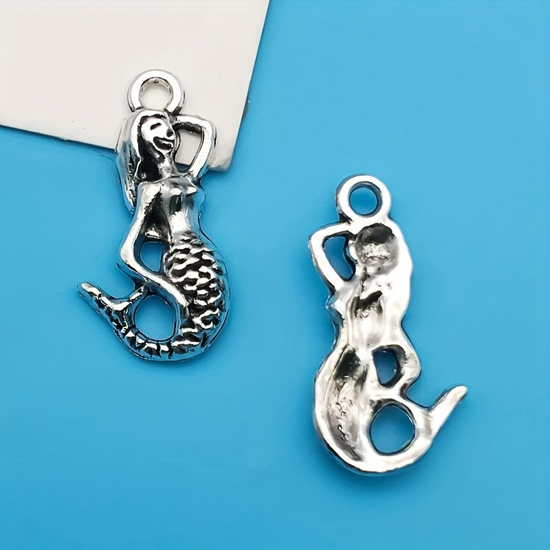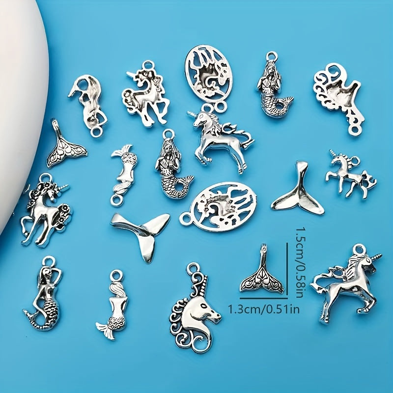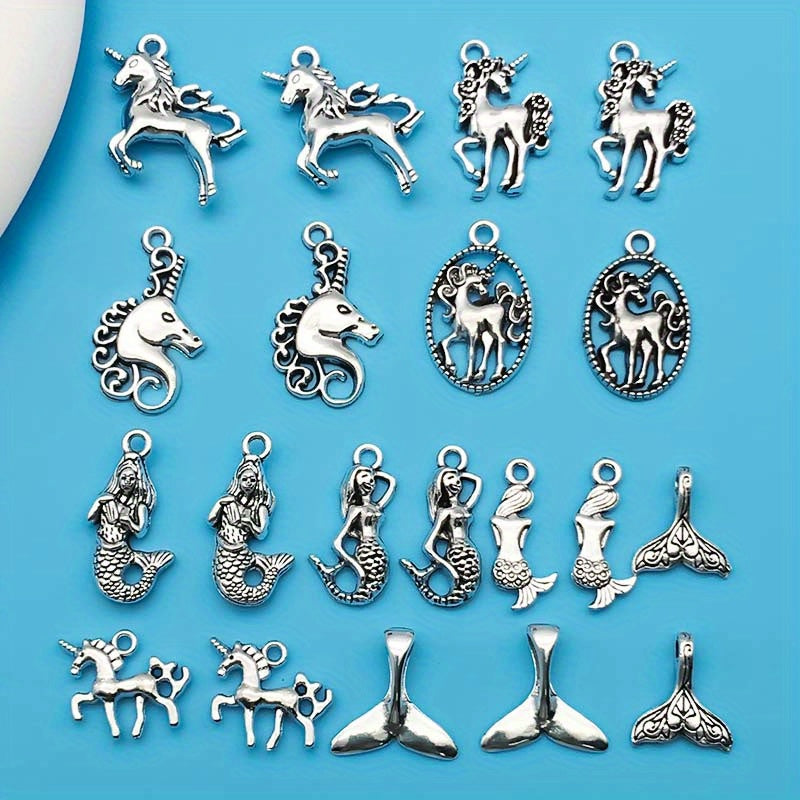 Explore your creativity with these charming pendants designed for jewelry making. The set includes 20 silver-plated mermaid and unicorn alloy pendants.