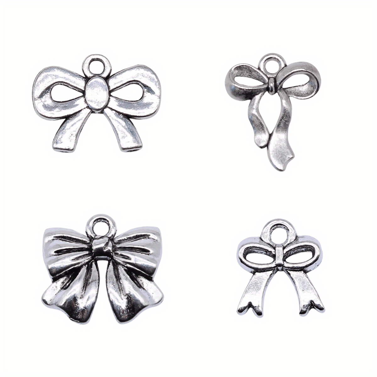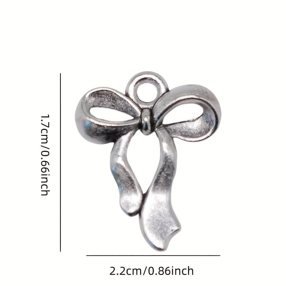 Enhance your jewelry making projects with this set of 20 silvery bow pendants. Perfect for creating unique and stylish accessories.
