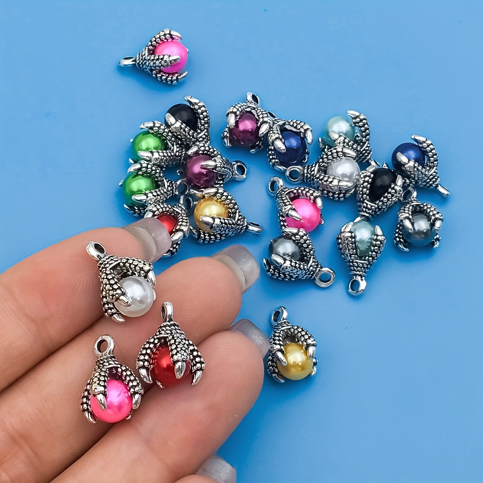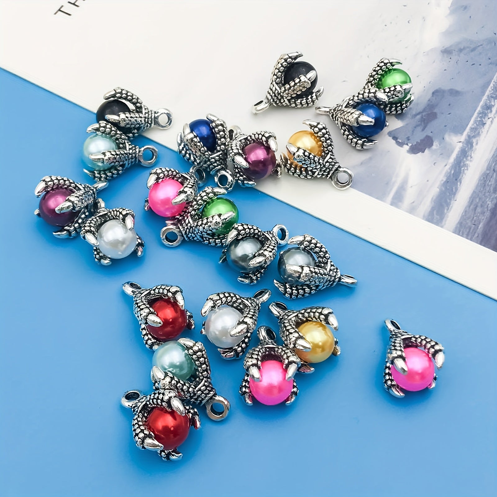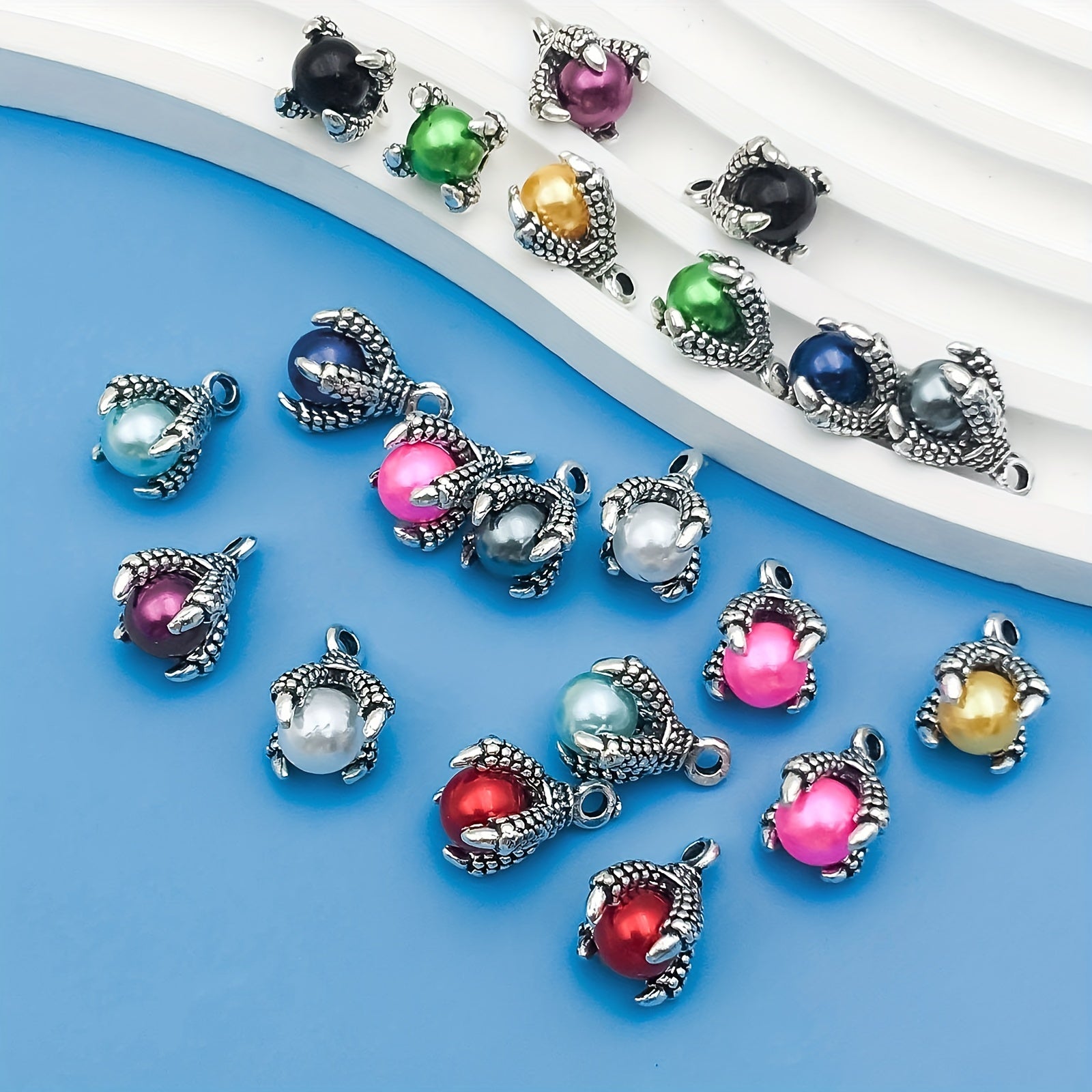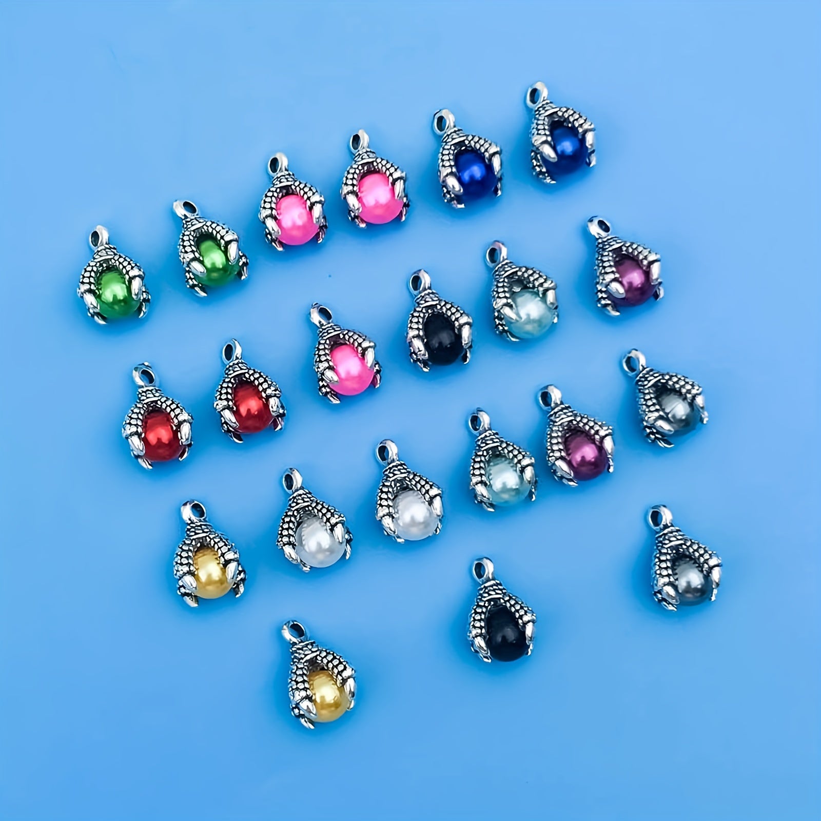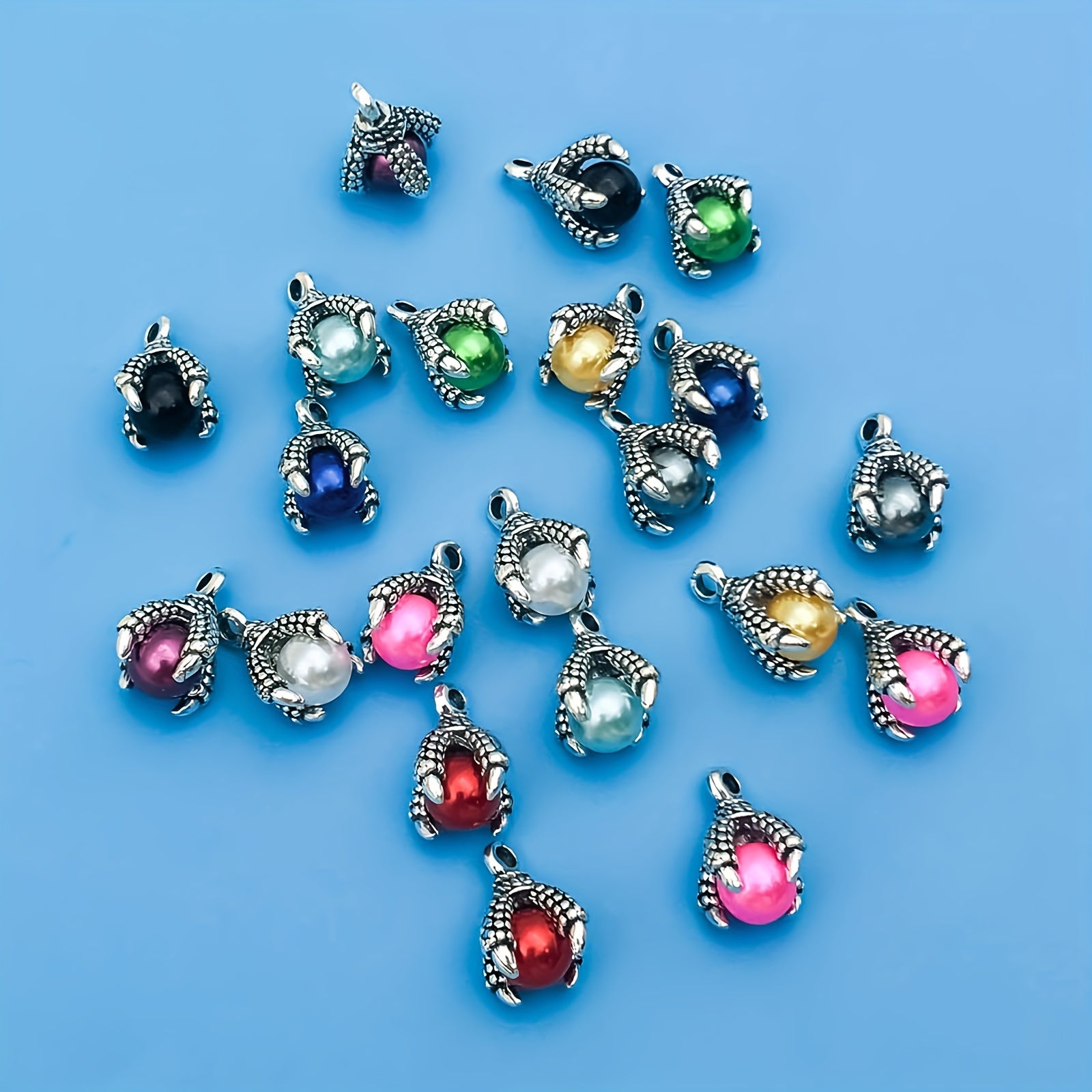 Elevate your bracelet creations with these 20pcs alloy pendants featuring silvery dragon claw and faux pearl design. Perfect for adding a unique touch to your jewelry pieces.