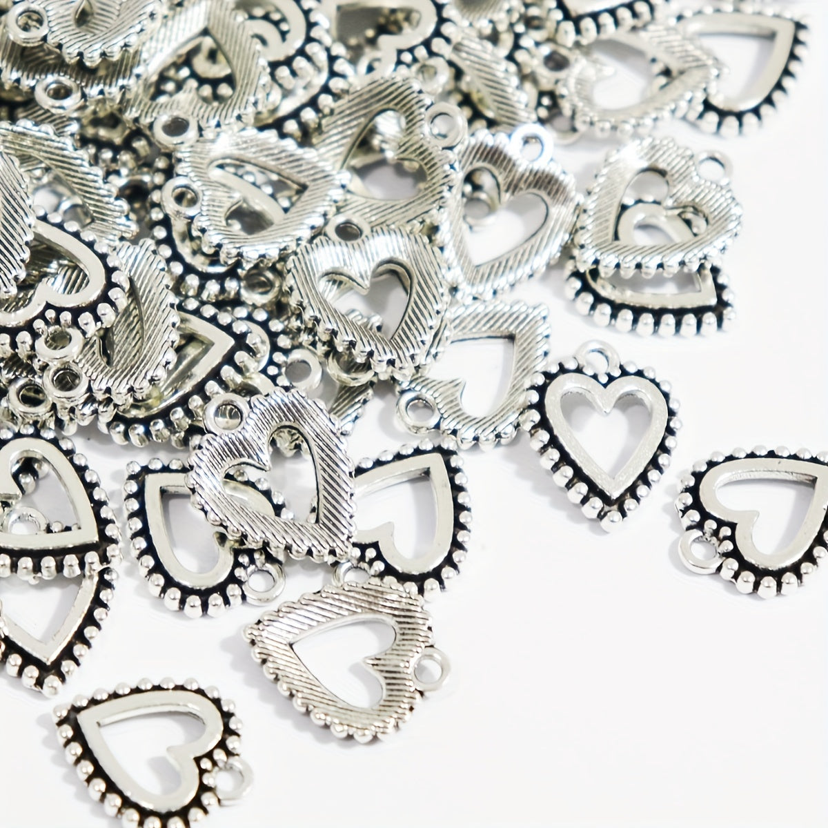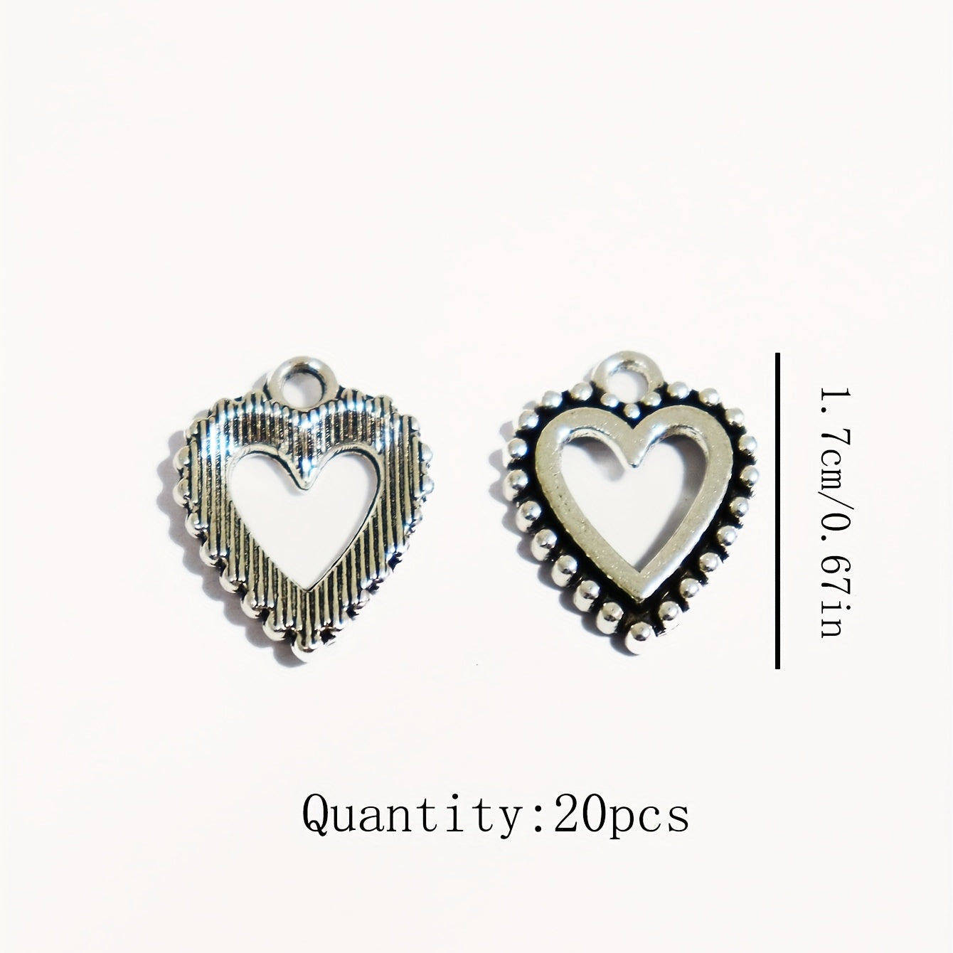 Add a touch of elegance to your DIY jewelry projects with these 20 silvery hollow heart shape pendants. Perfect for creating earrings, bracelets, necklaces, and other accessories.