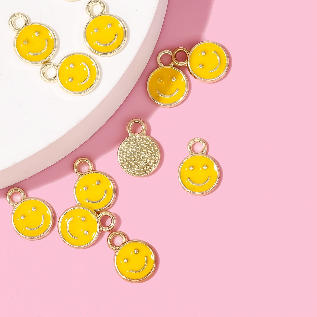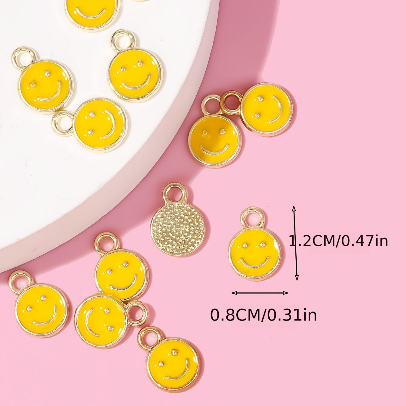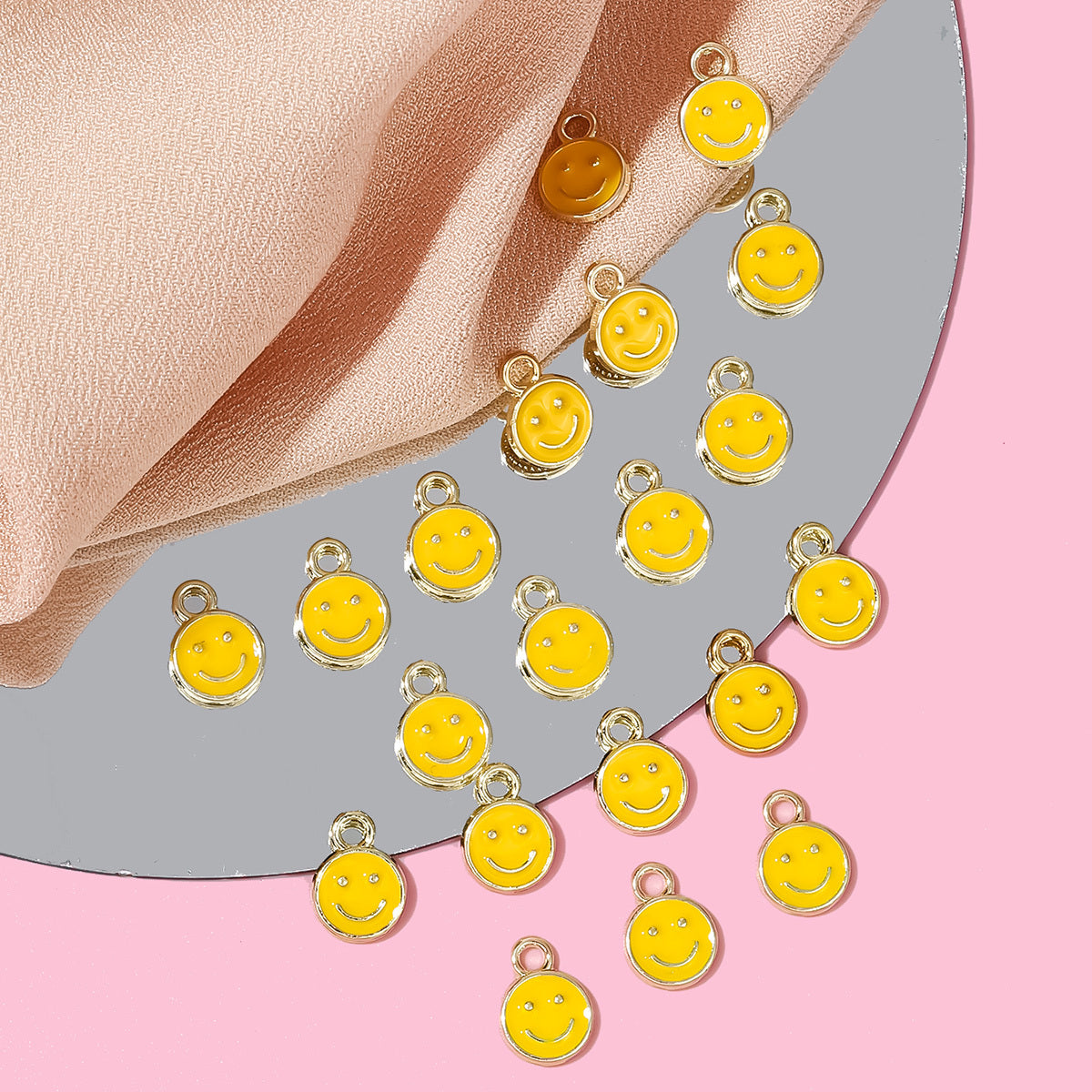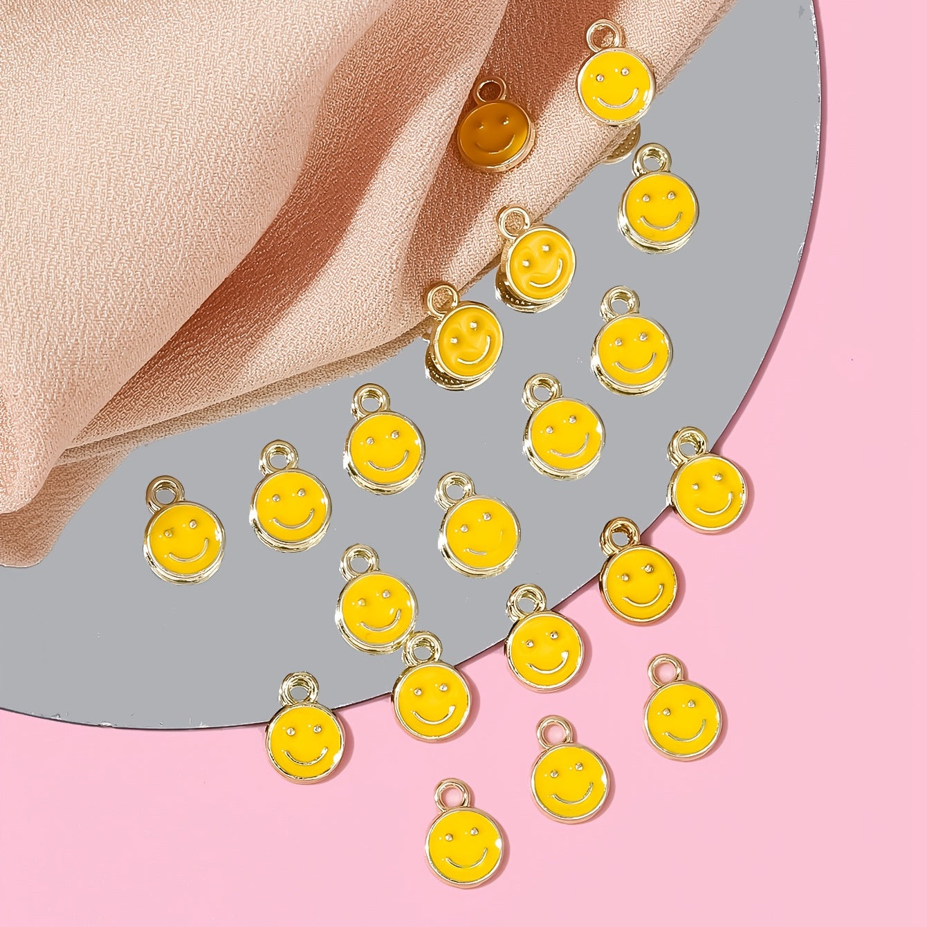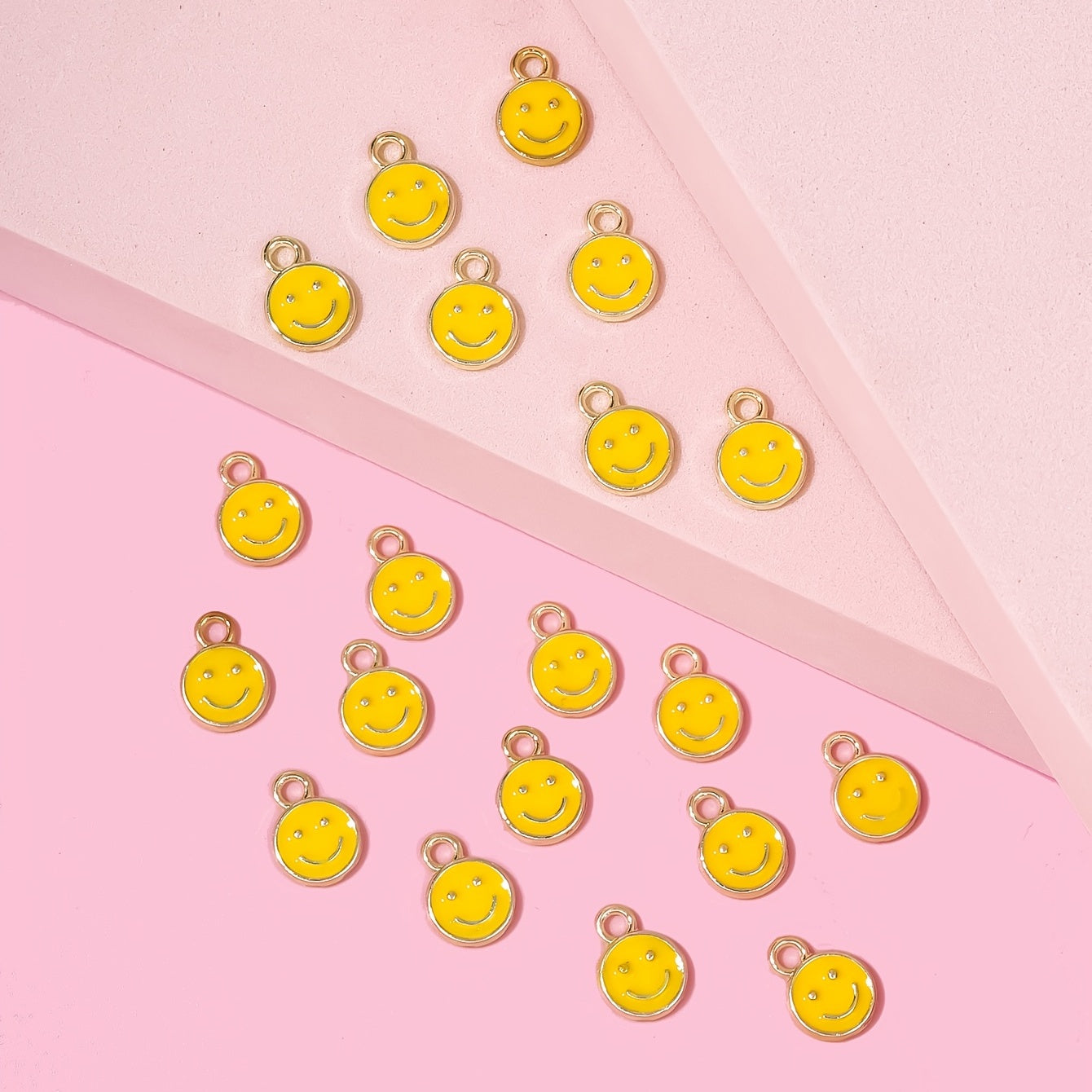 Brighten up your accessories with this set of 20 smiley face pendants. The yellow color and drip oil design add a fun and cheerful touch to your jewelry-making projects.