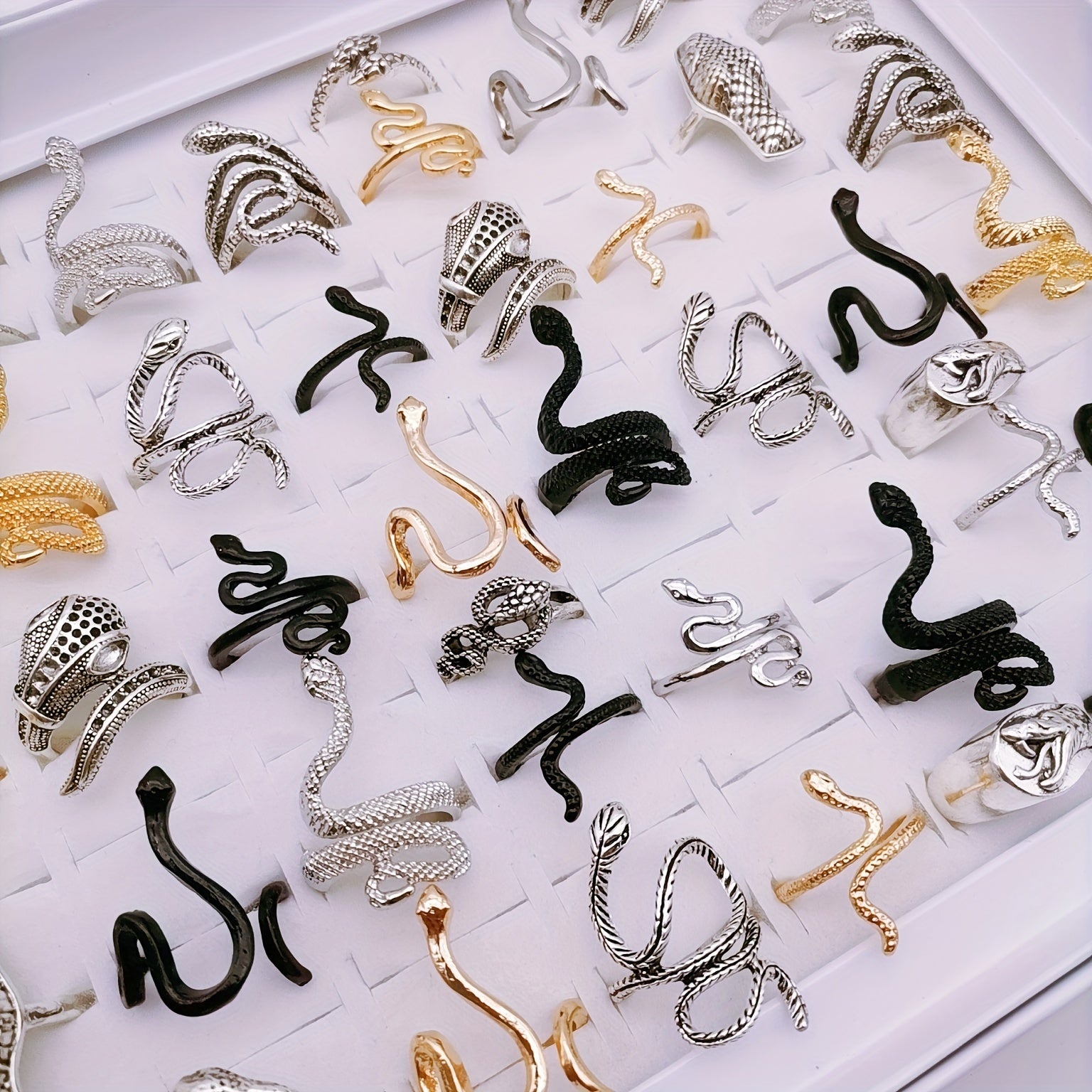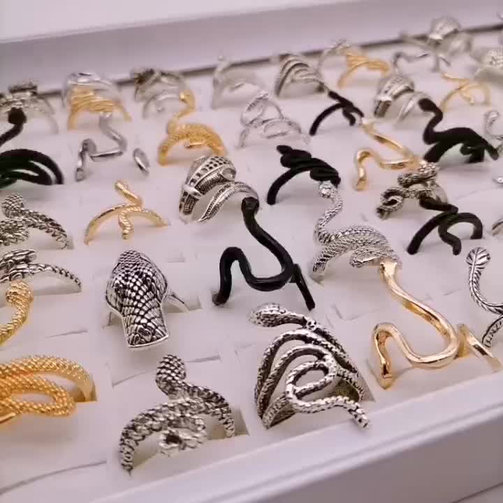 Add a touch of edgy style to your outfit with this set of 20 finger rings featuring snake and other shapes. Perfect for parties or as a gift for a friend who loves punk fashion.