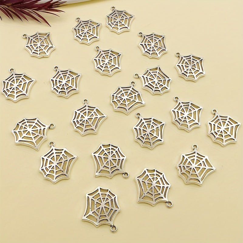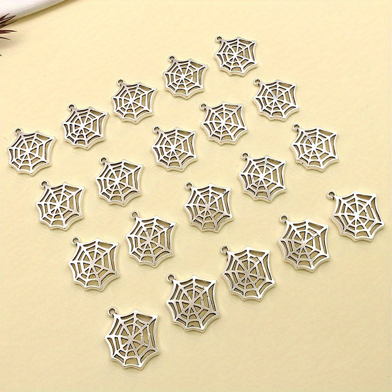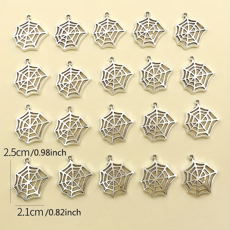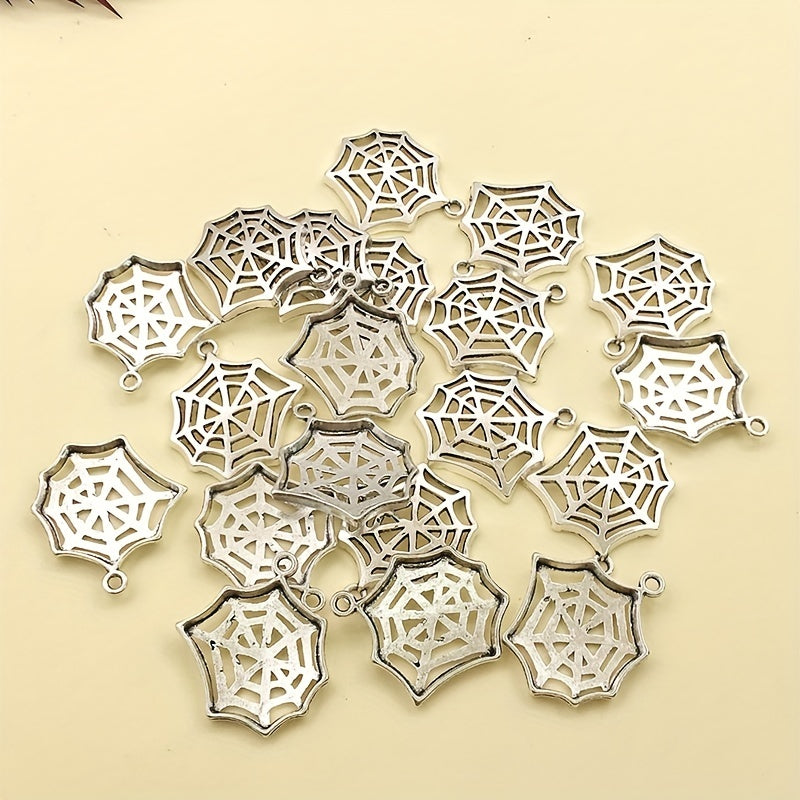 Add a spooky touch to your jewelry creations with these 20 zinc alloy antique silver spider web charms. Perfect for Halloween decoration or themed jewelry pieces.