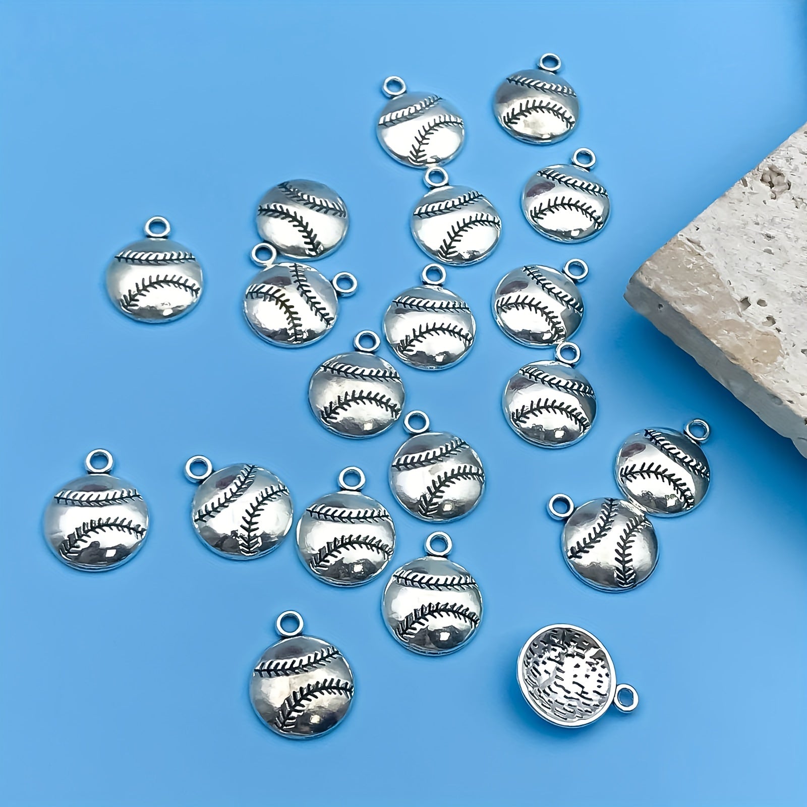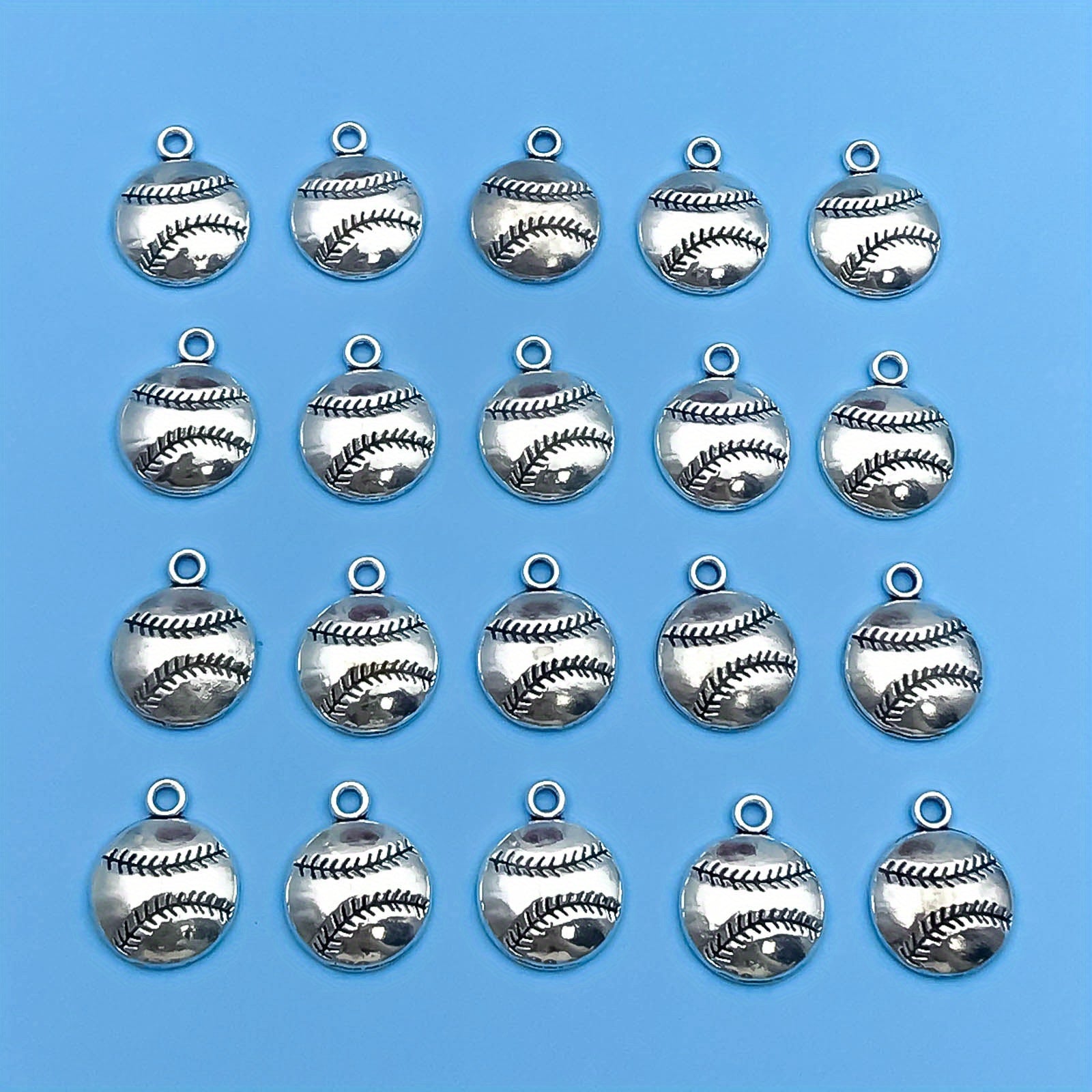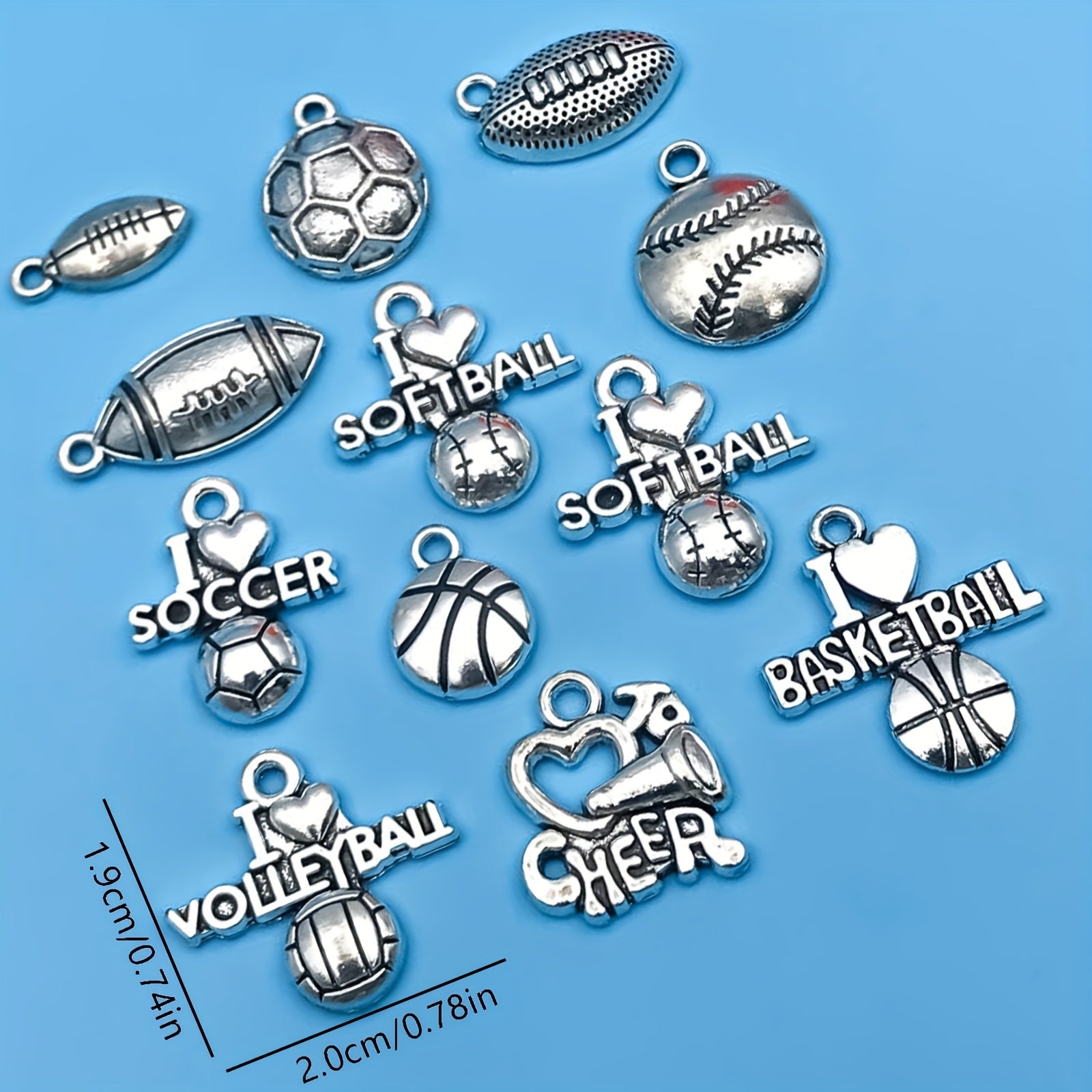 This set includes 20 pieces of zinc alloy charms in a sports theme, featuring American football, basketball, baseball, and rugby designs. Perfect for DIY projects like necklaces, bracelets, and jewelry making.