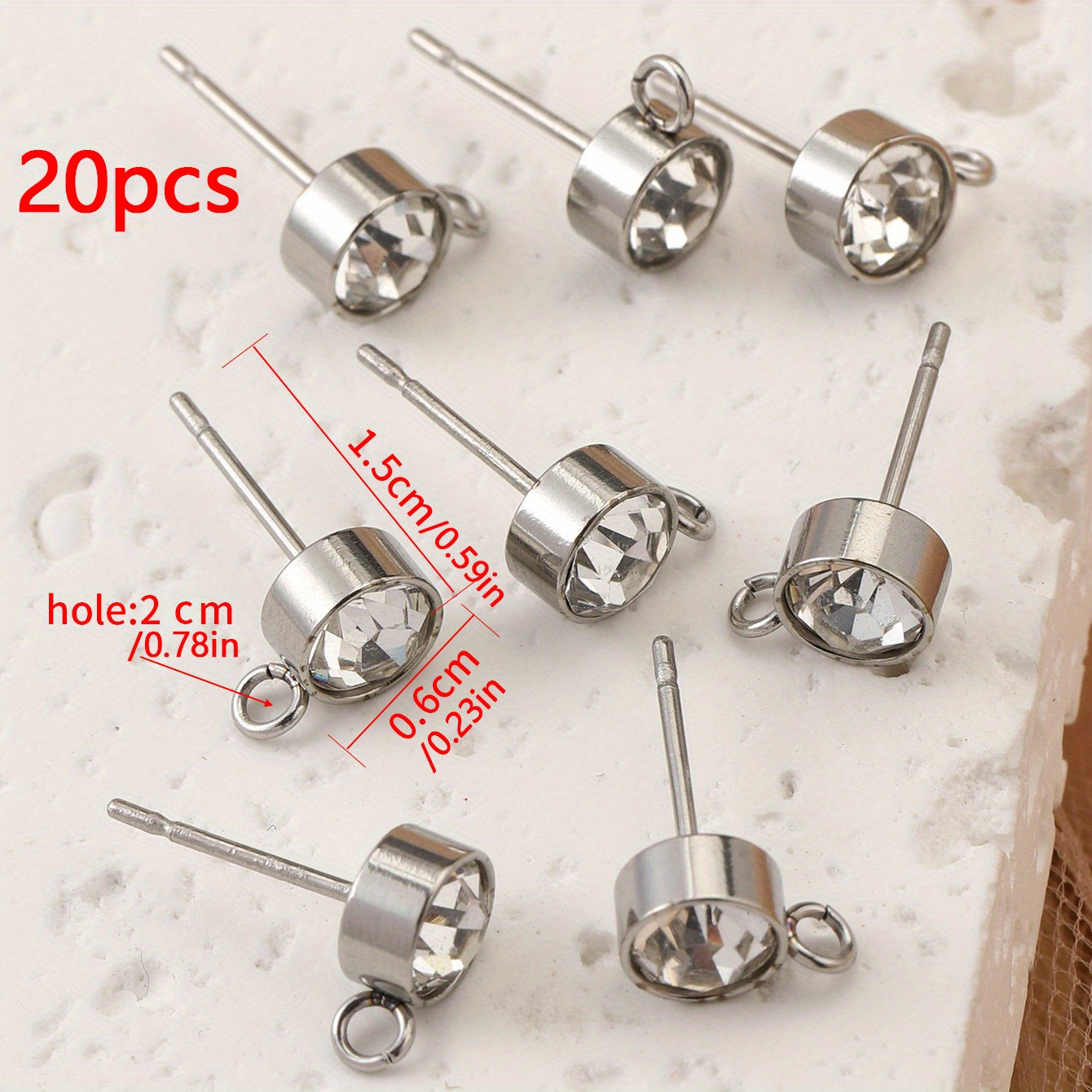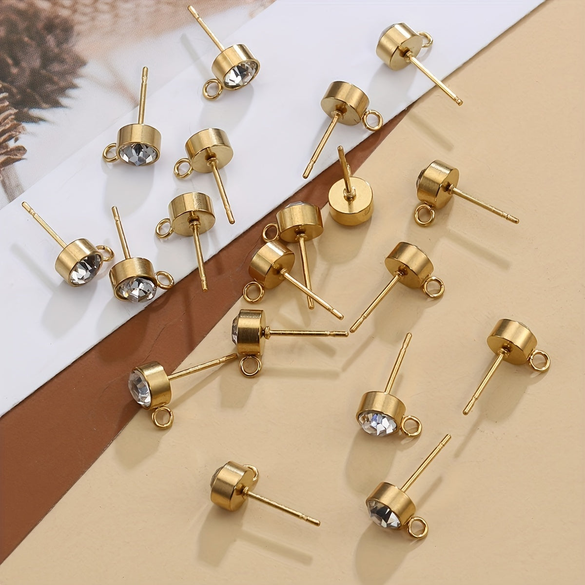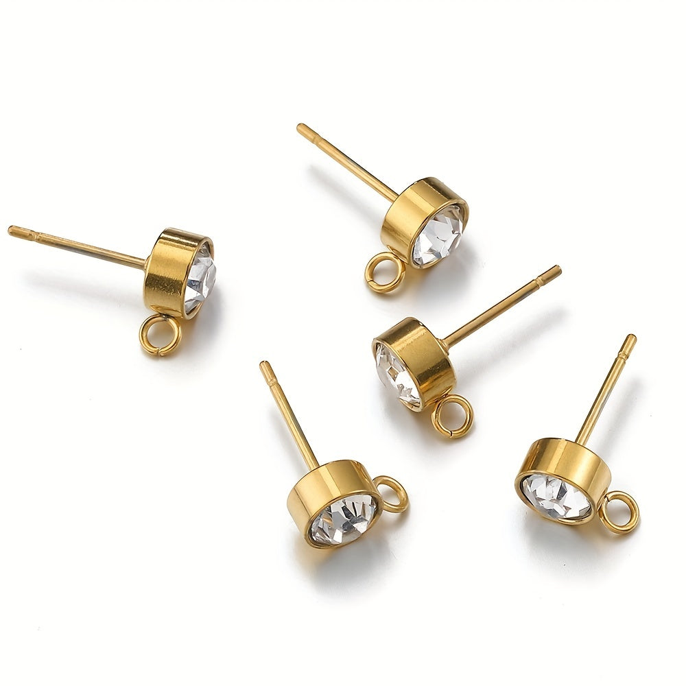 Elegant stainless steel earrings with rhinestone decor for DIY jewelry making. Includes 10 golden and 10 silver earrings.