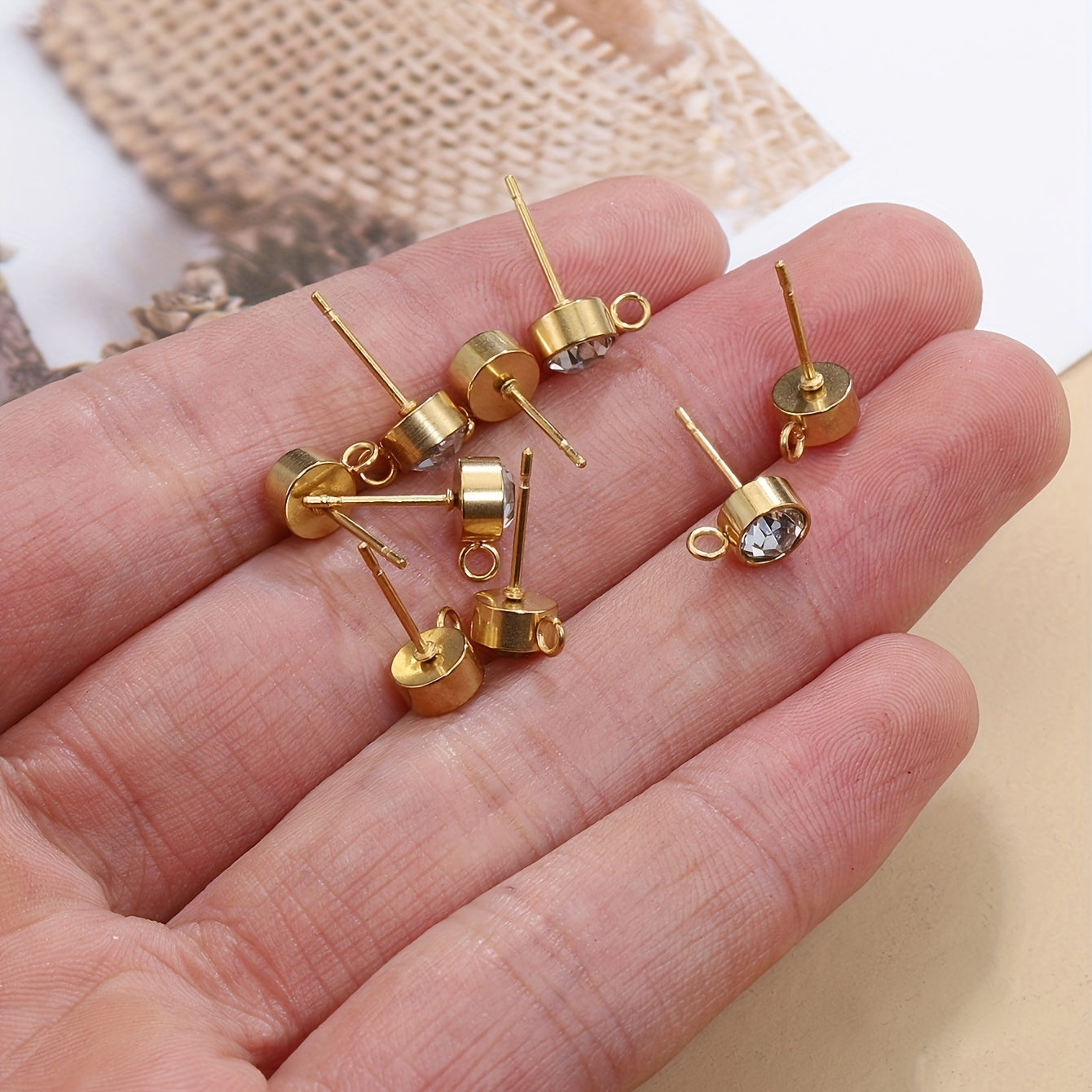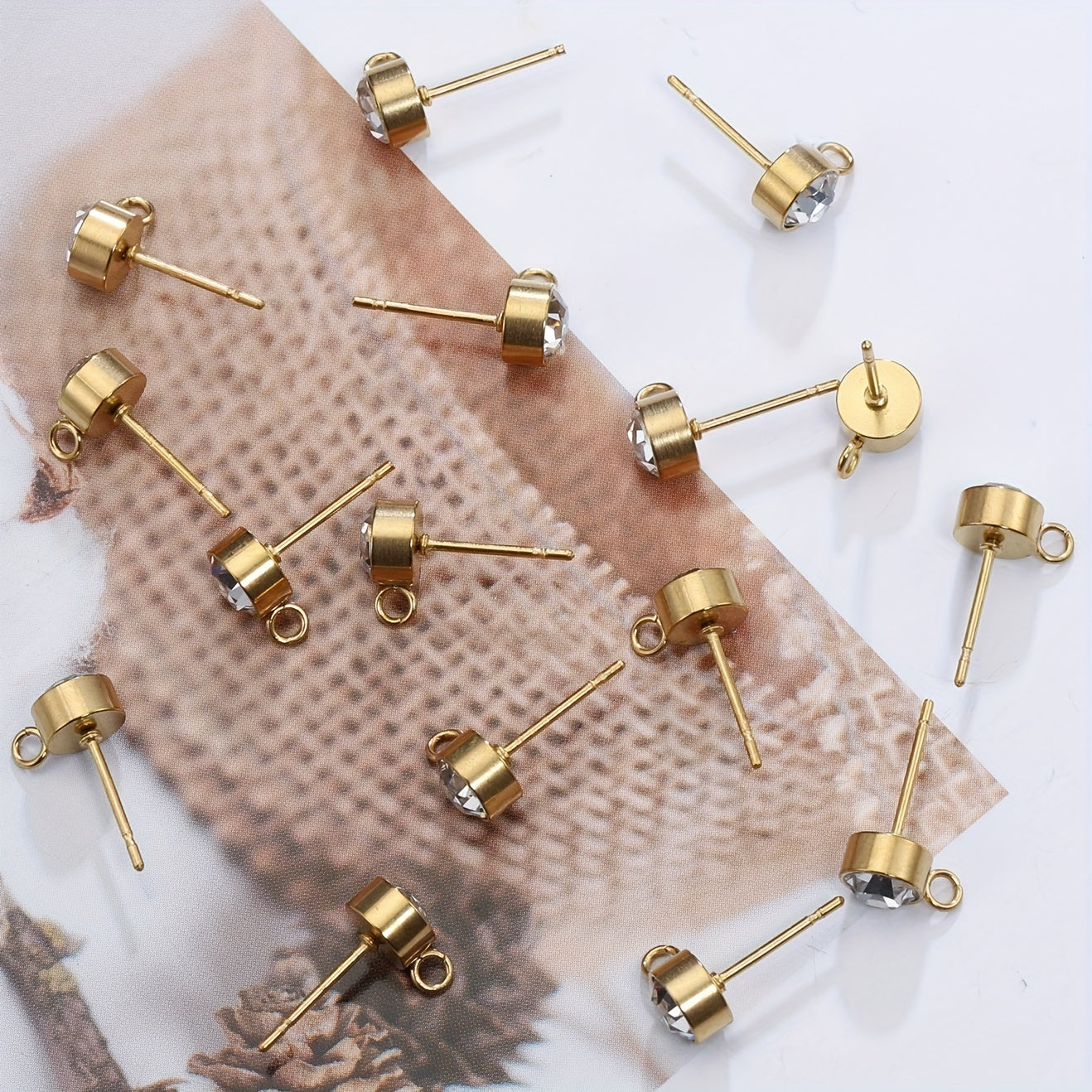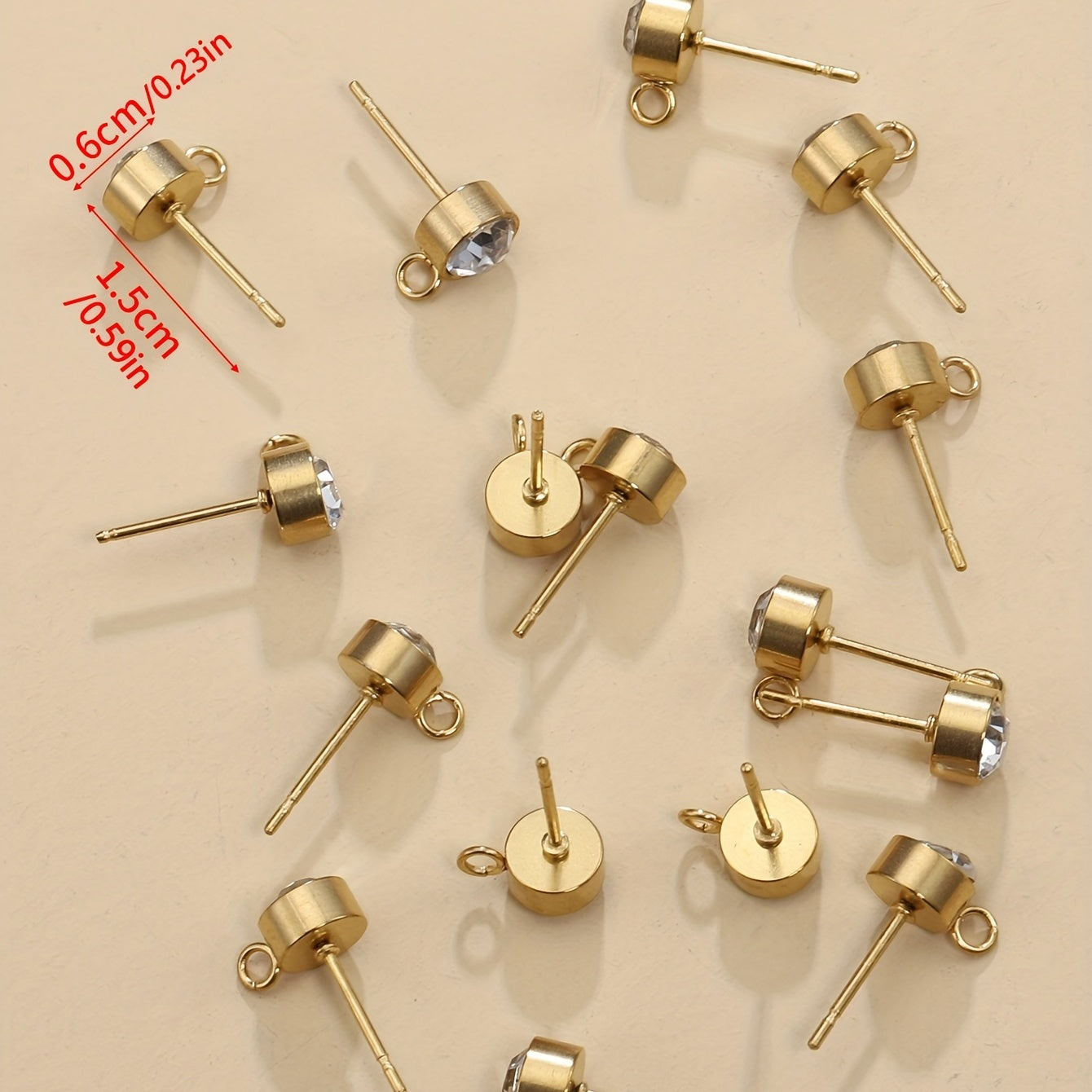 Elegant stainless steel earrings with rhinestone decor for DIY jewelry making. Includes 10 golden and 10 silver earrings.