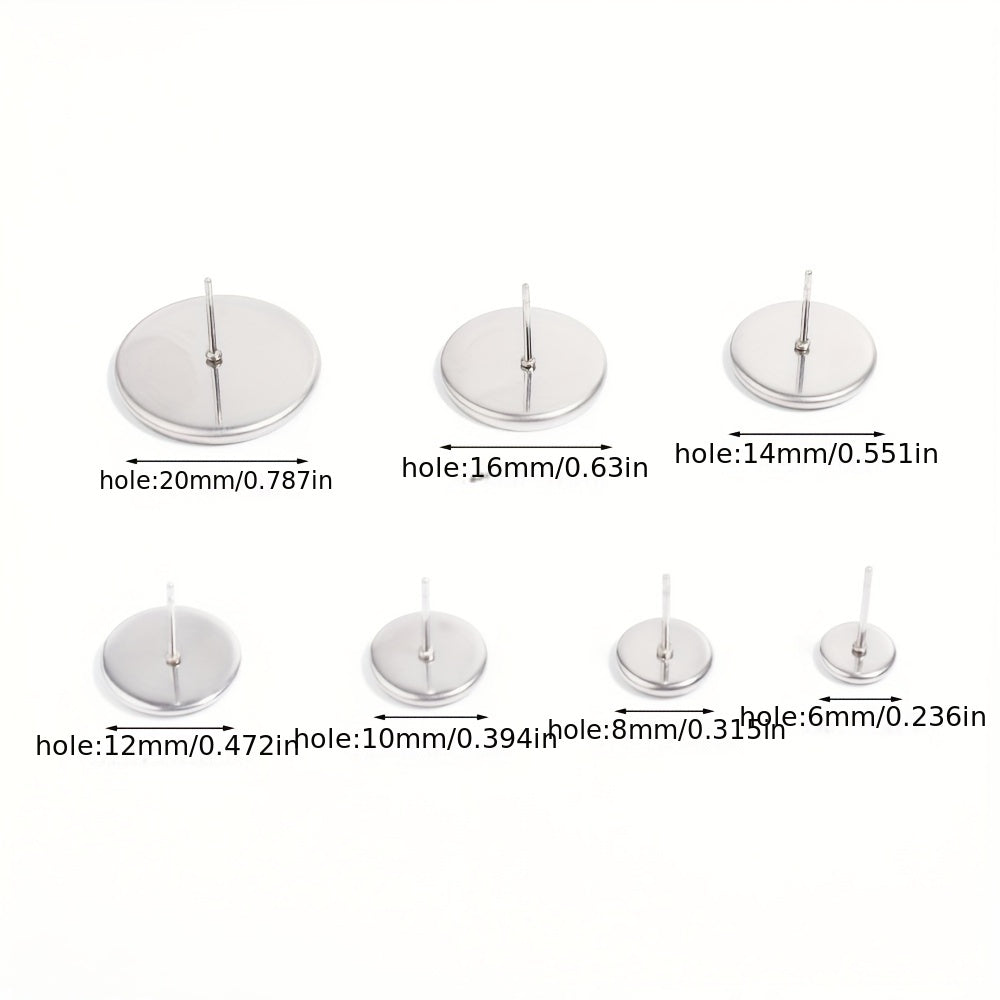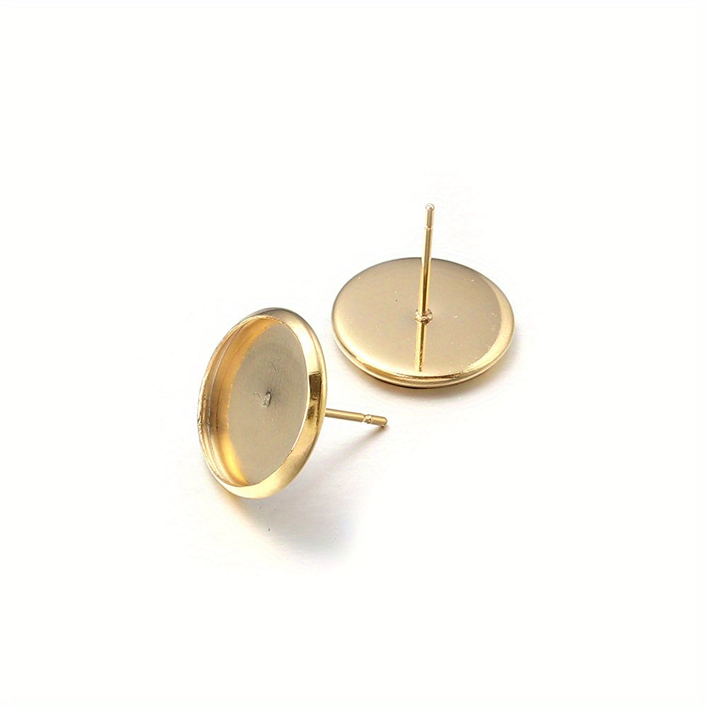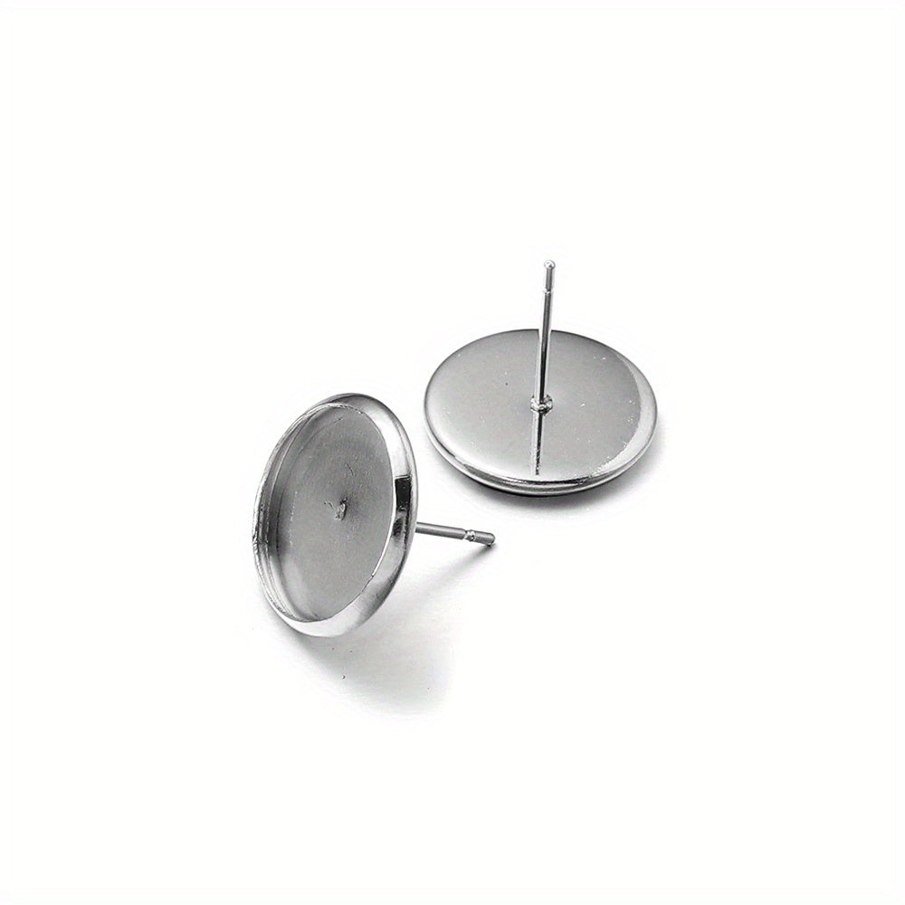 Create your own stylish earrings with these 20 round stainless steel stud bezels. Perfect for DIY ear jewelry making projects.