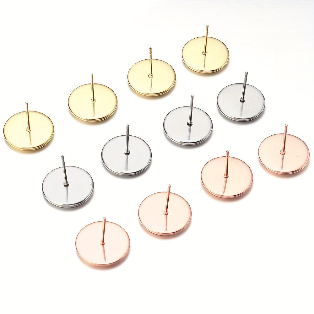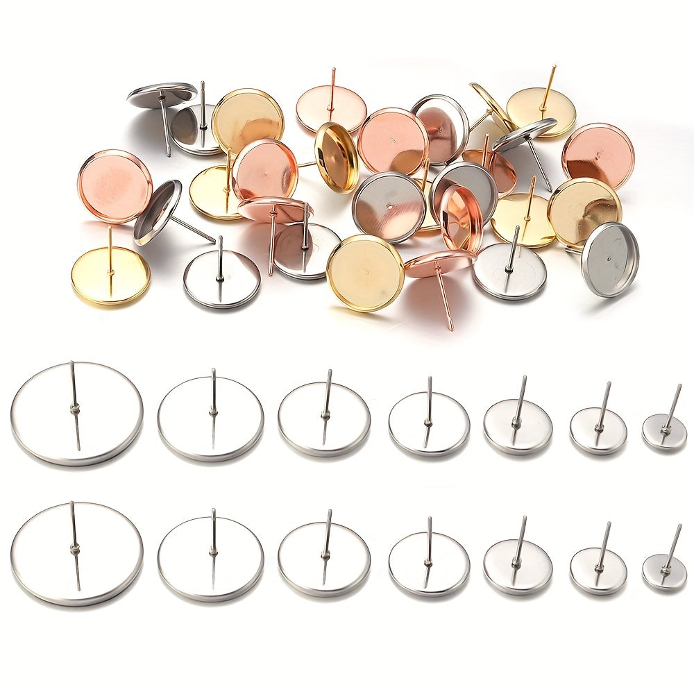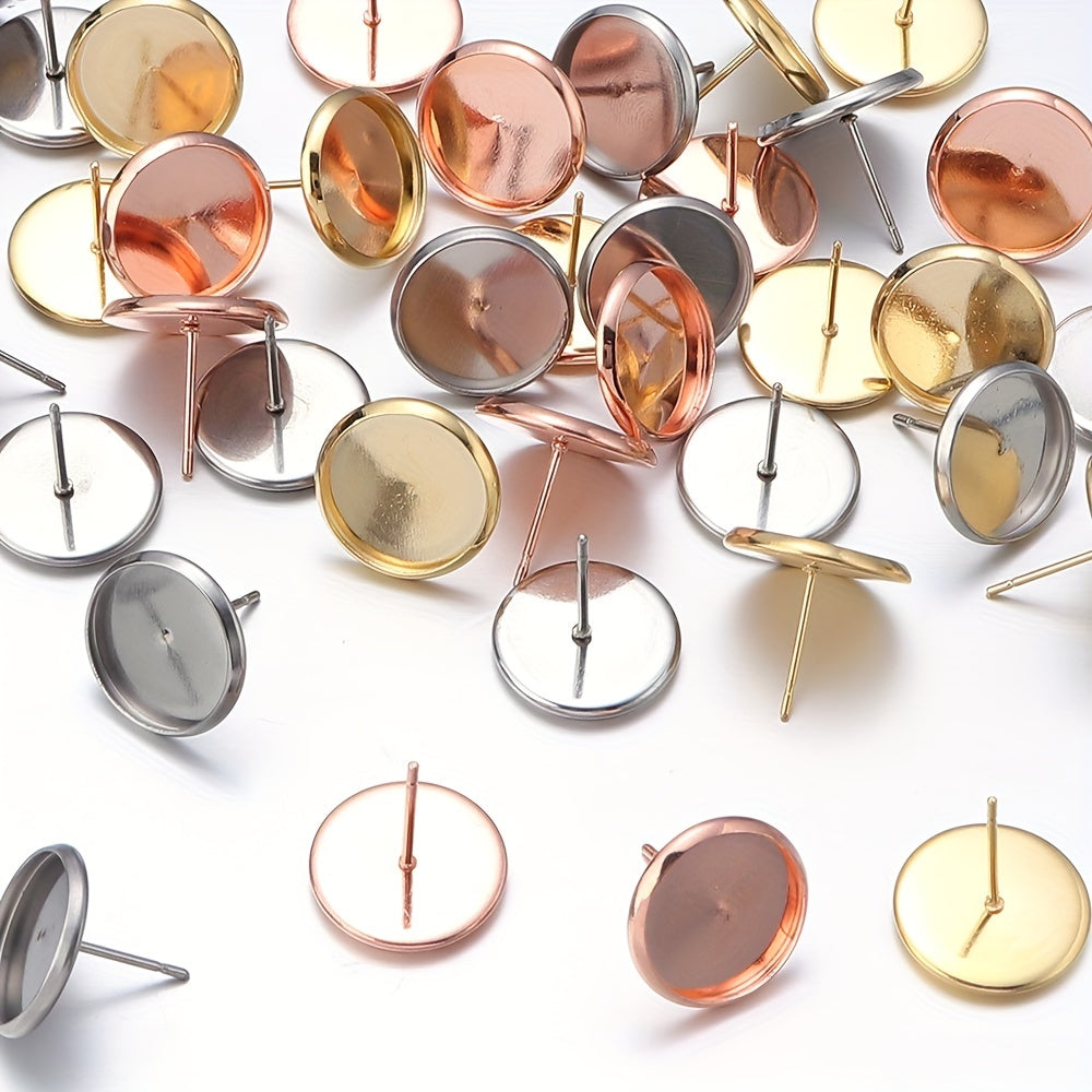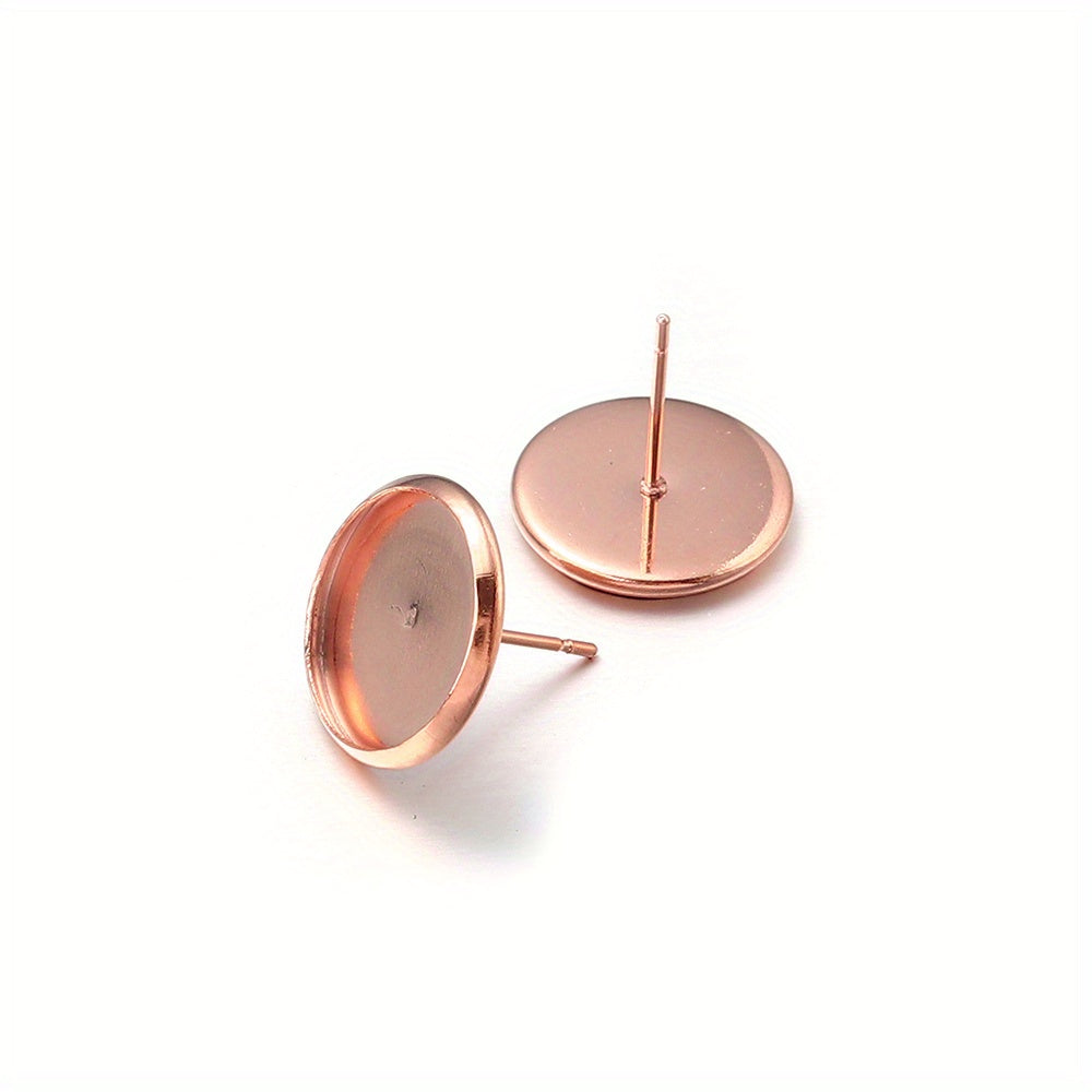 Create your own stylish earrings with these 20 round stainless steel stud bezels. Perfect for DIY ear jewelry making projects.