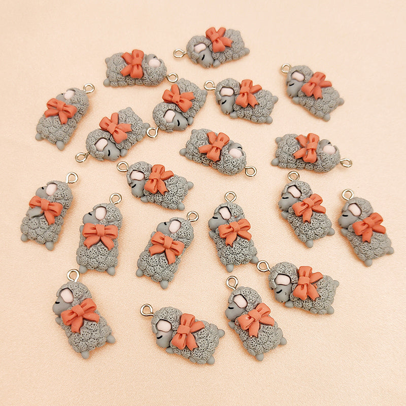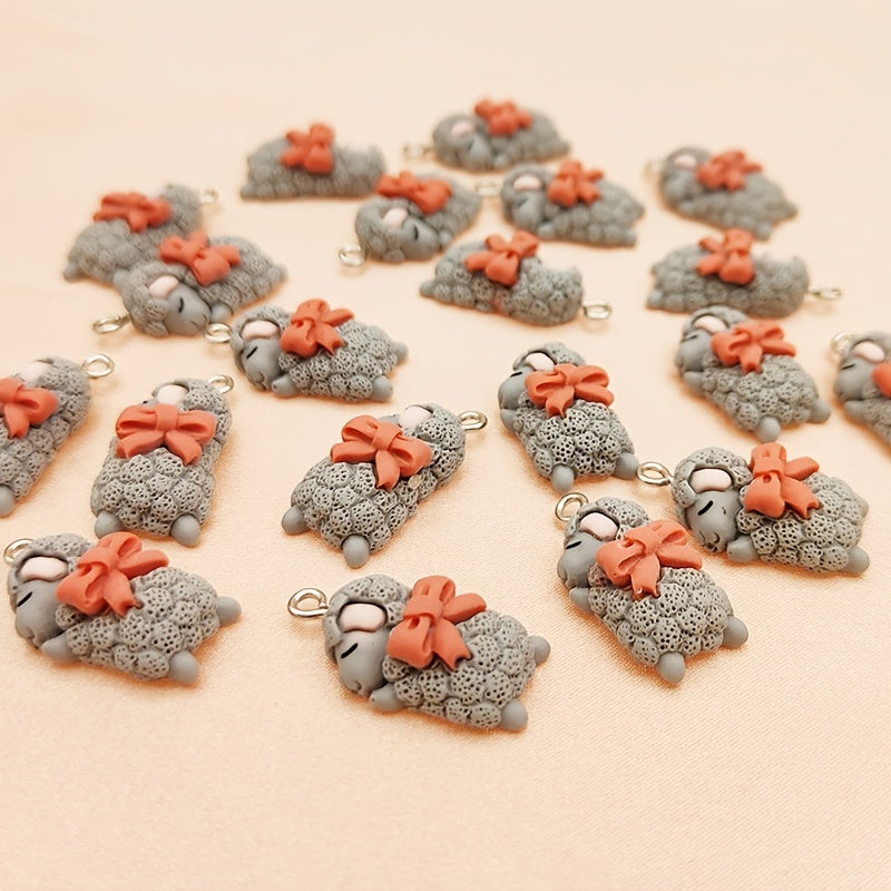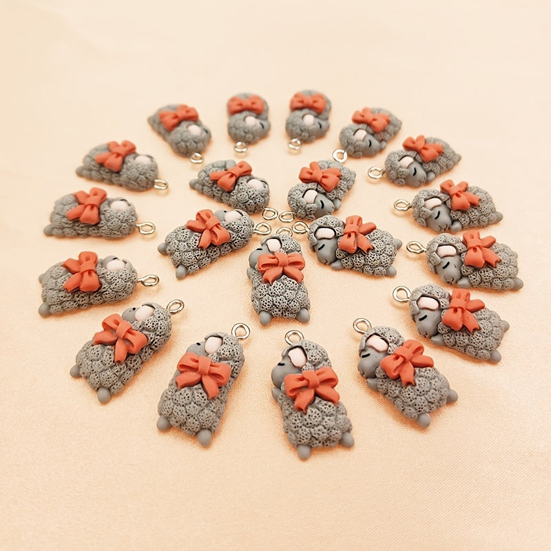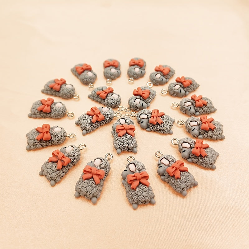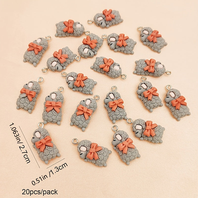 Adorable pack of 20 small sheep resin pendants for crafting baby earrings, necklaces, keychains, and more. Perfect for creating cute cartoon-themed accessories.