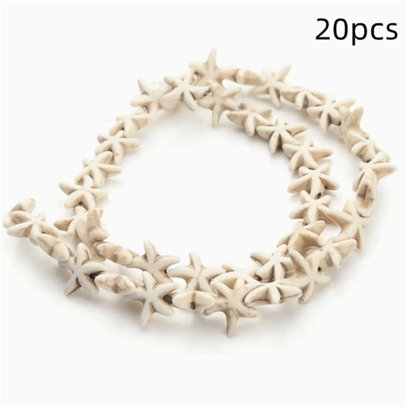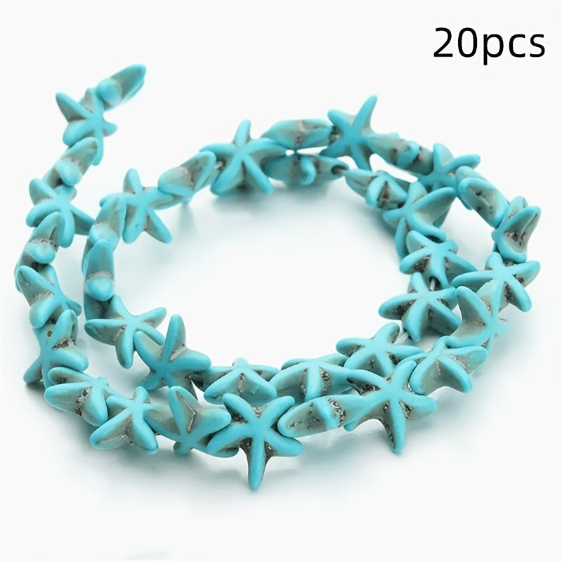 Enhance your jewelry making with this set of 20 turquoise starfish natural stone beads. Perfect for creating unique bracelets and necklaces.