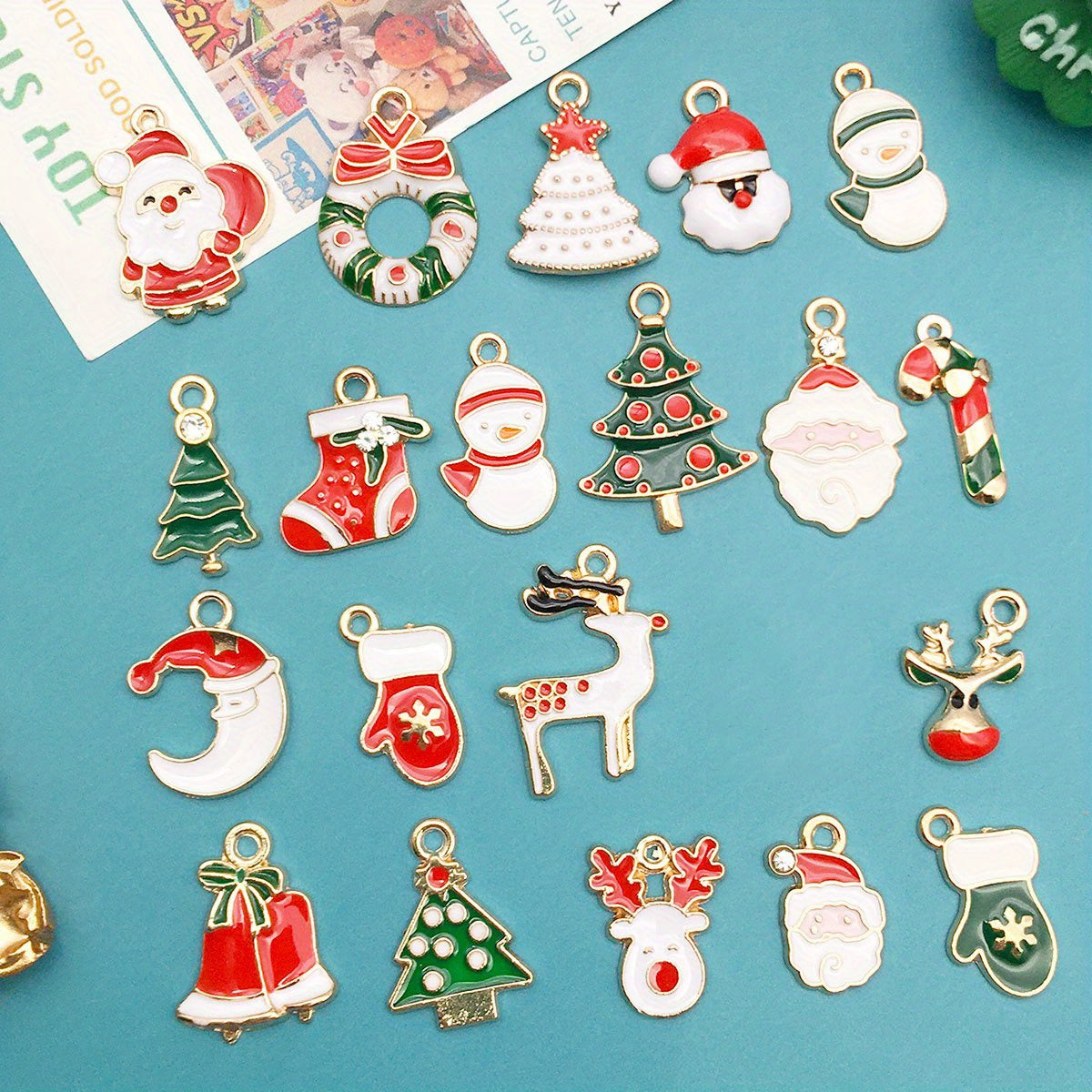 Add a festive touch to your jewelry creations with these 21 enamel charms featuring Christmas tree and Santa Claus designs. Perfect for necklaces, bracelets, earrings, and other DIY projects. Great for Xmas decorations.