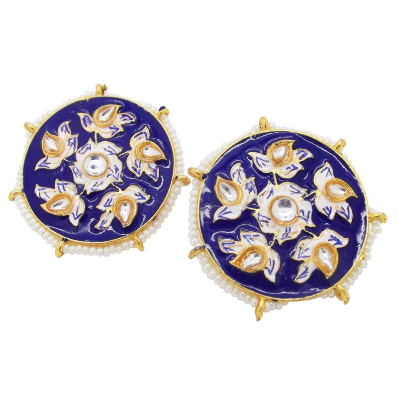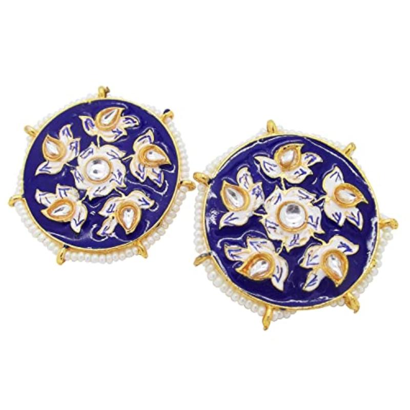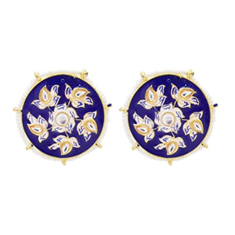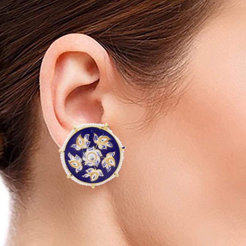 Elegant 22kt gold-plated stud earrings with vibrant Meenakari work. These earrings feature a large round design that adds a touch of traditional charm to any outfit.
