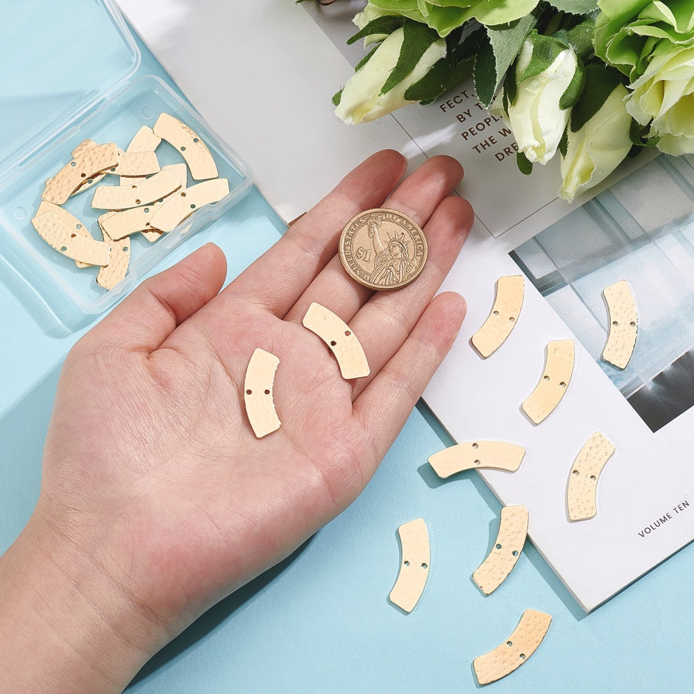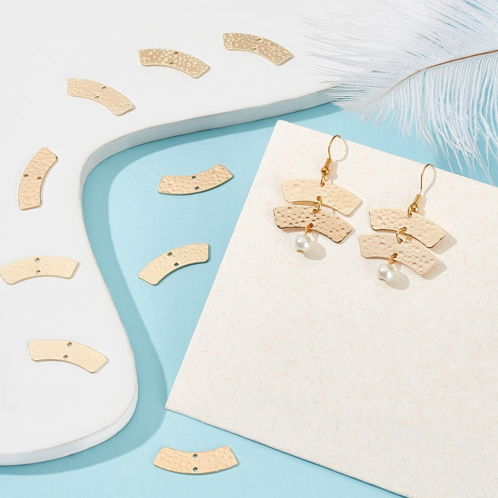 Create stunning jewelry pieces with these 18K gold plated brass connectors. The curved rectangle blank metal connectors are perfect for necklaces, bracelets, and earrings.