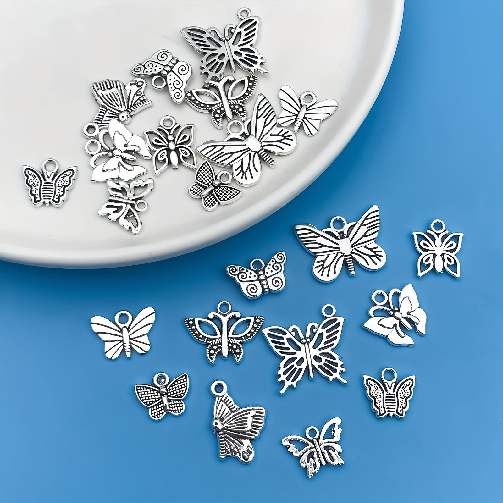 Create beautiful jewelry with this set of 22 butterfly shaped charms pendants. Made of zinc alloy with an antique silver finish, these charms are perfect for necklaces, bracelets, and earrings.