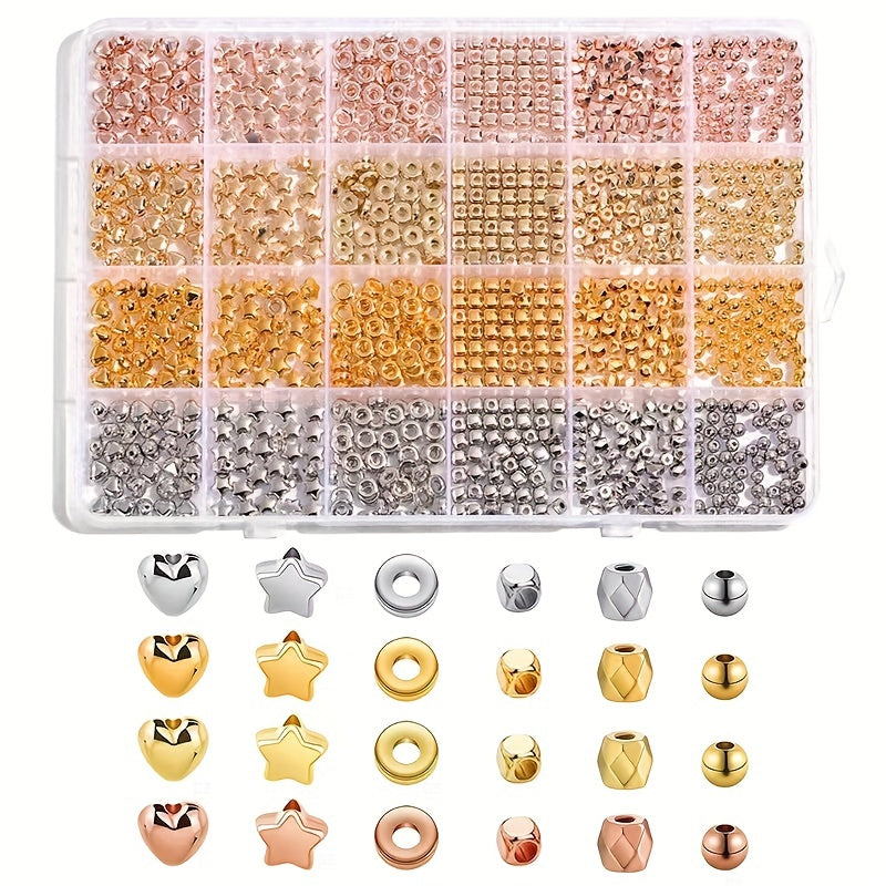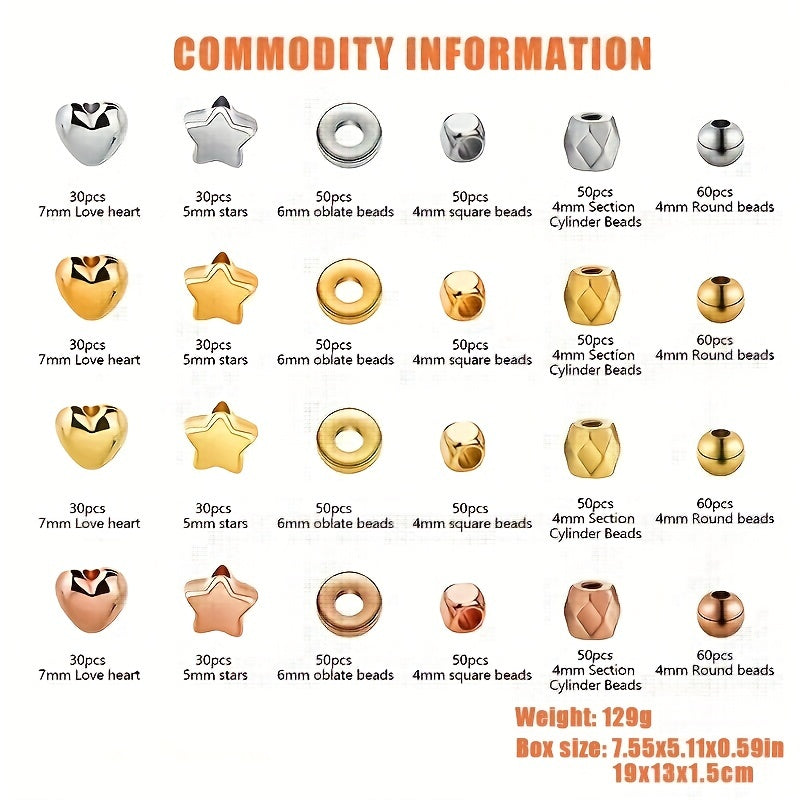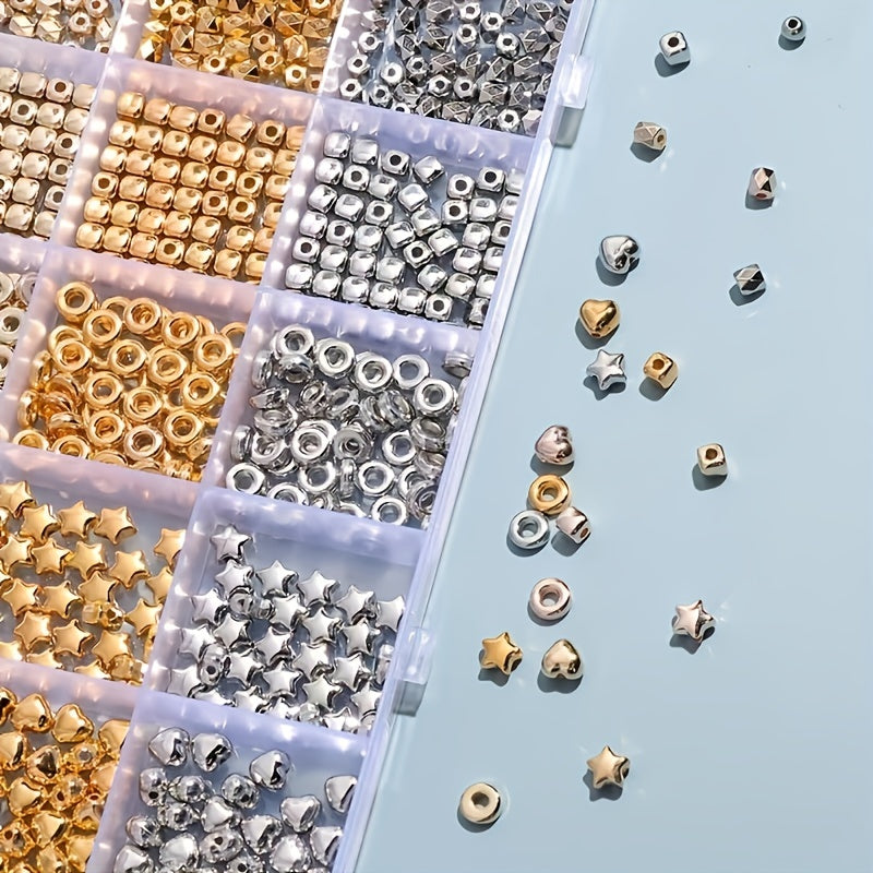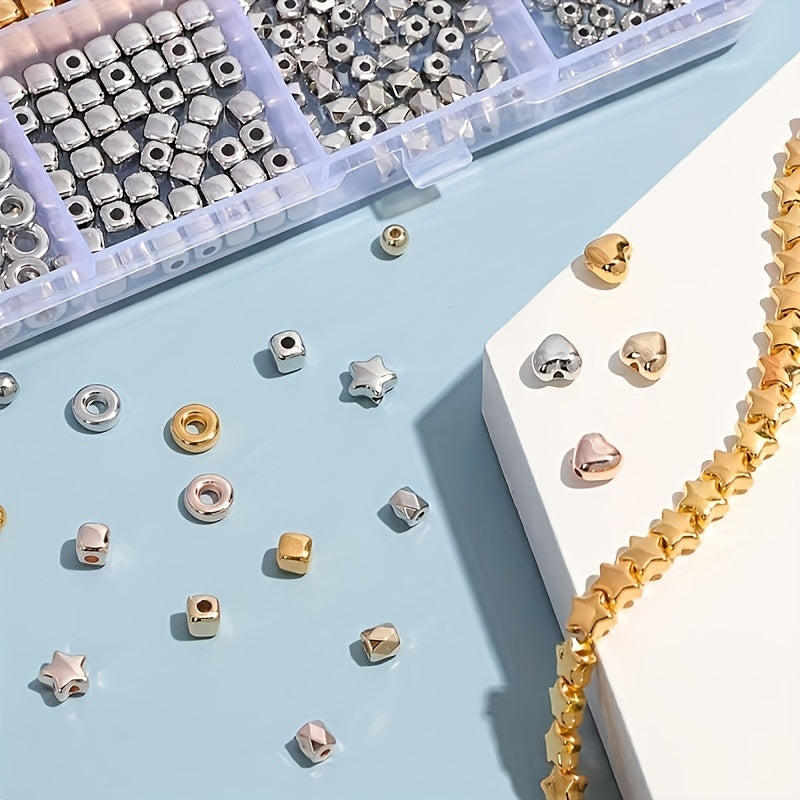 This set includes 1080 grains of bracelet beads, round beaded star beads for creating your own jewelry pieces.