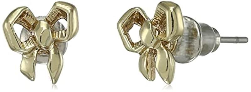 Elegant bow stud earrings plated with 24 Kt gold, perfect for adding a touch of glamour to any outfit.