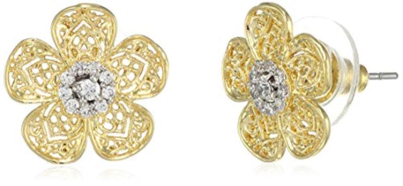Add a touch of elegance to your look with these delicate filigree flower stud earrings. Featuring 24 Kt gold plating, these earrings are perfect for everyday wear or special occasions.