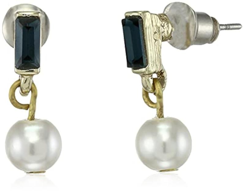 Elegant pearl drop earring featuring a jet stone accent. Plated with 24 Kt gold.