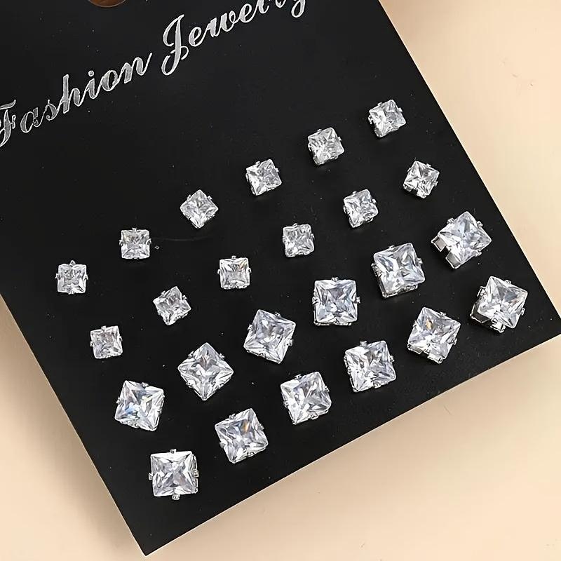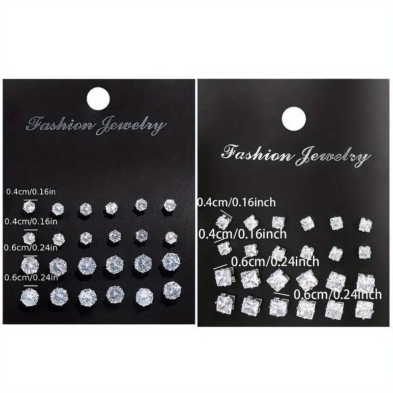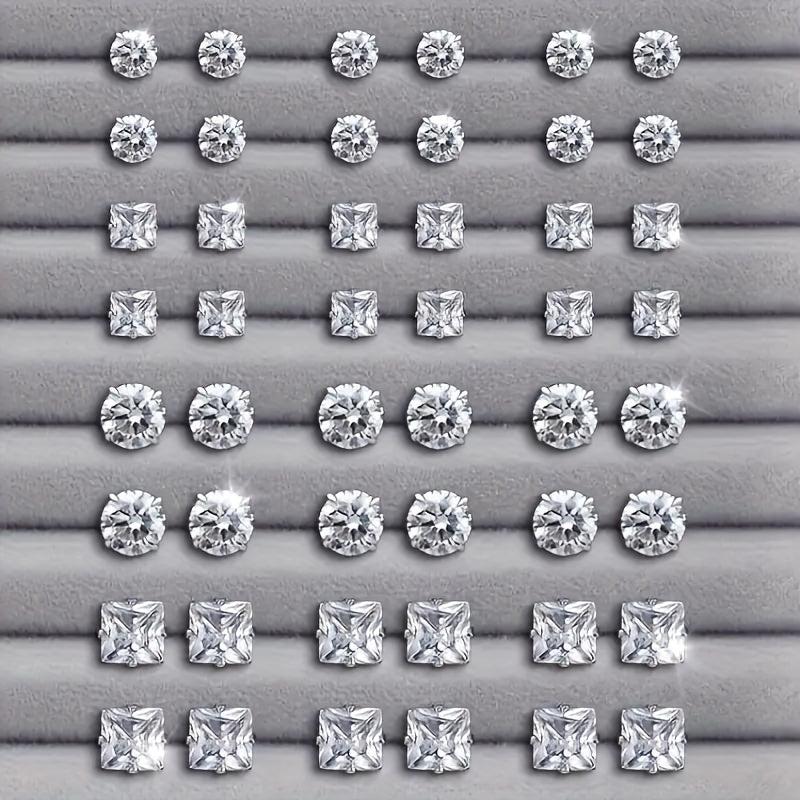 Add a touch of sparkle to your look with this set of 24 pairs of round and square stud earrings. Made of stainless steel, these earrings are durable and stylish for any occasion.