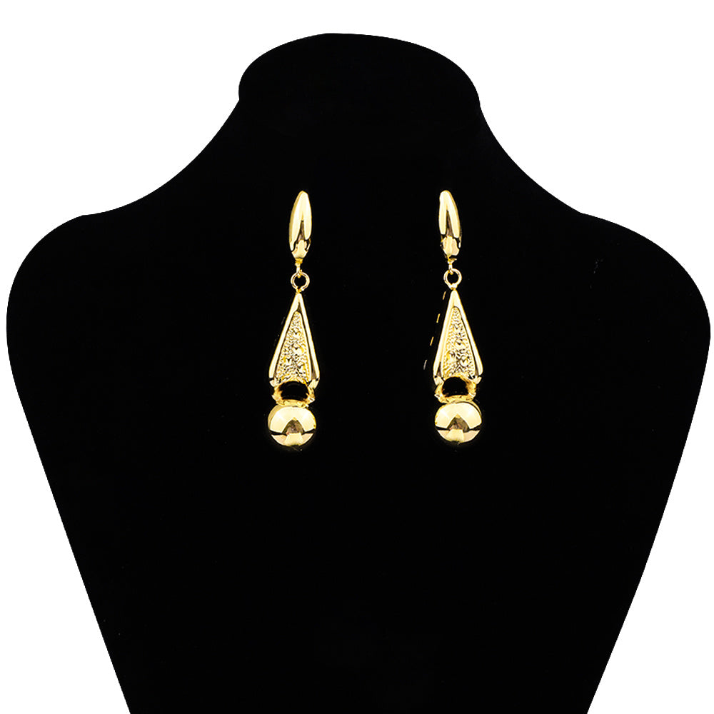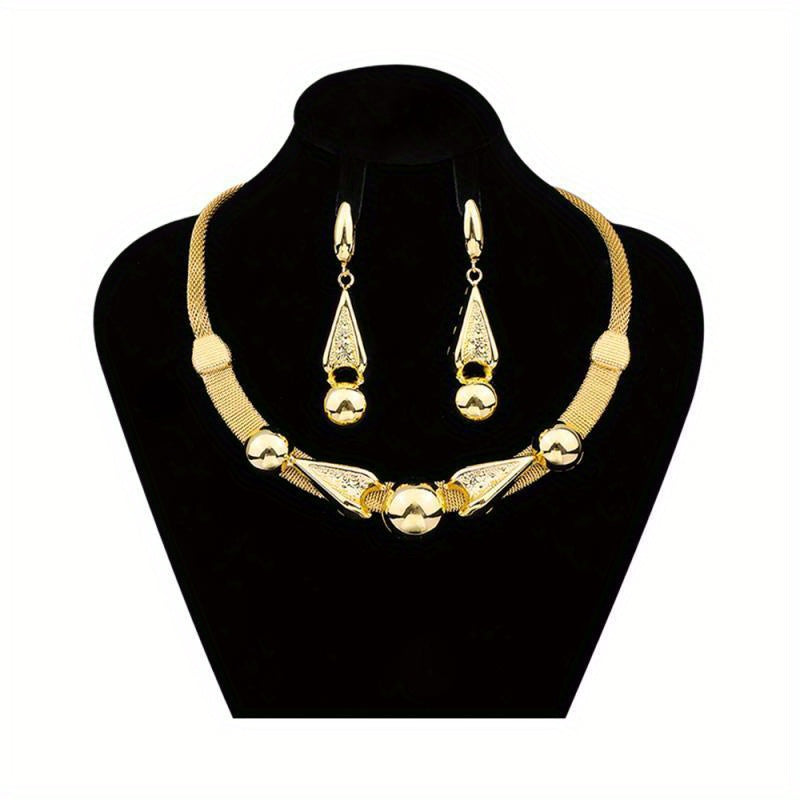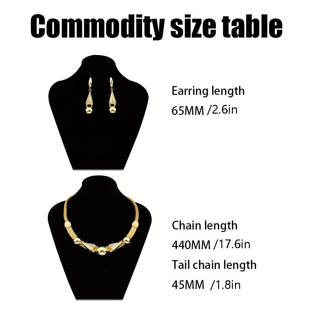 Enhance your look with this stunning 24K plated copper jewelry set that includes a choker necklace and dangle earrings. Perfect for any occasion.