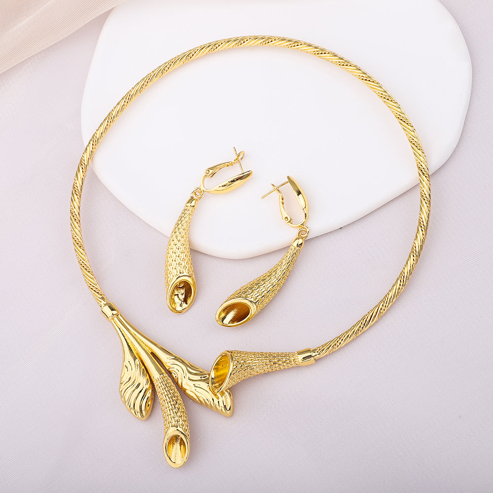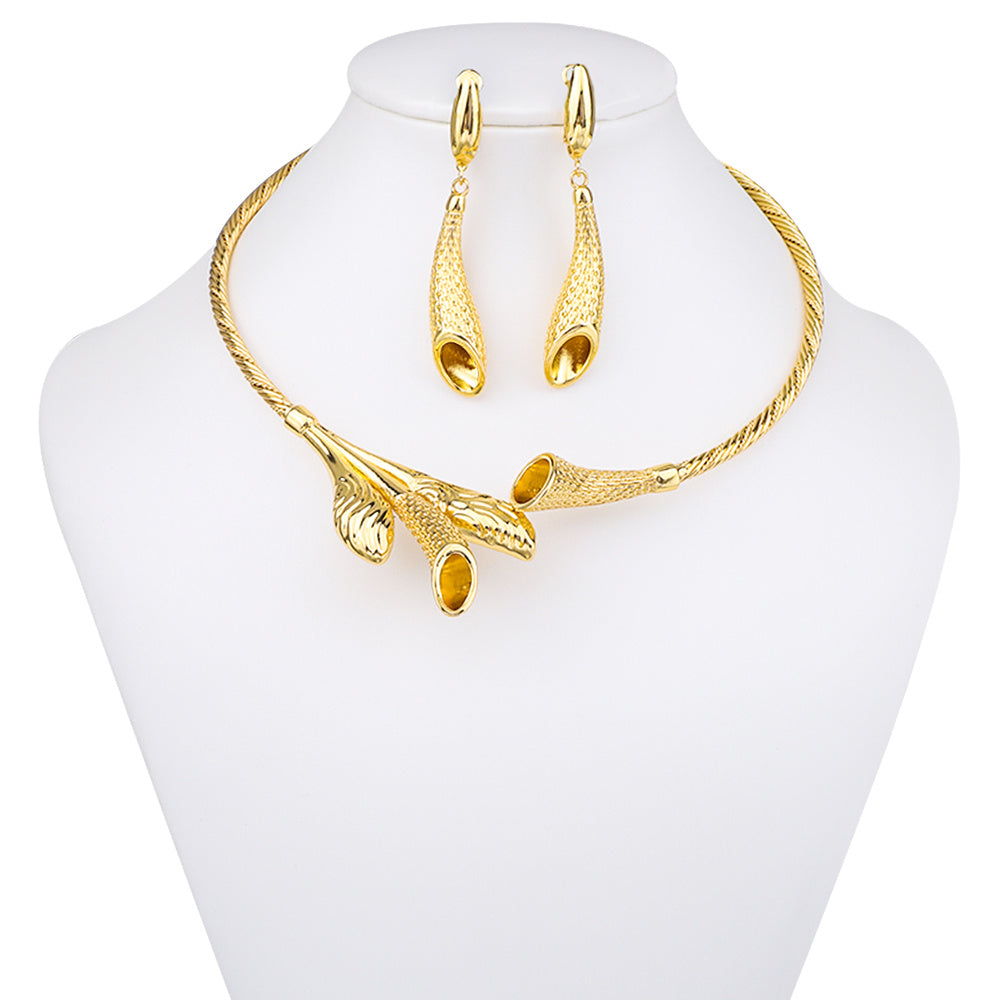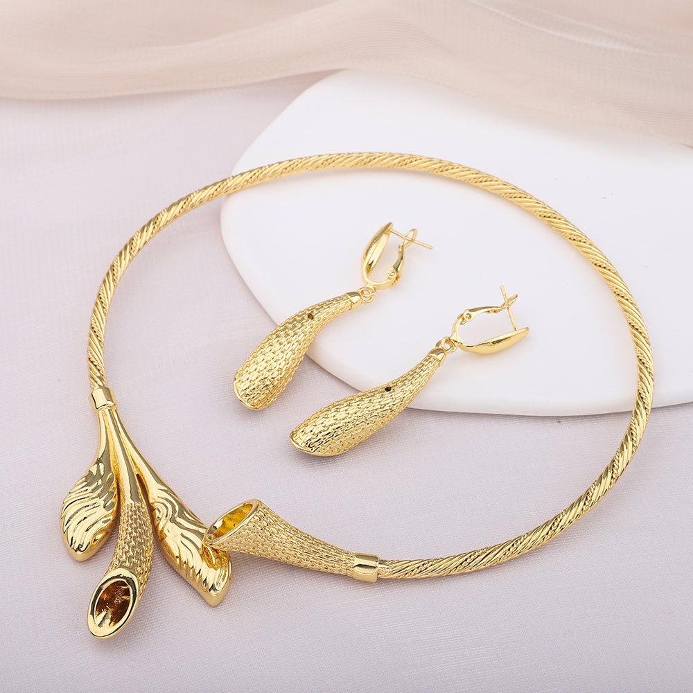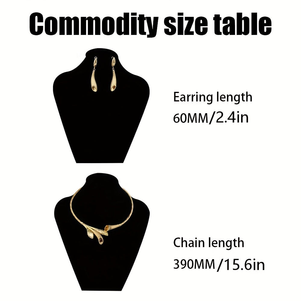 Elegant jewelry set for women, perfect for weddings, parties, and brides. Made of high-quality 24K plated copper. Includes a choker necklace and dangle earrings.