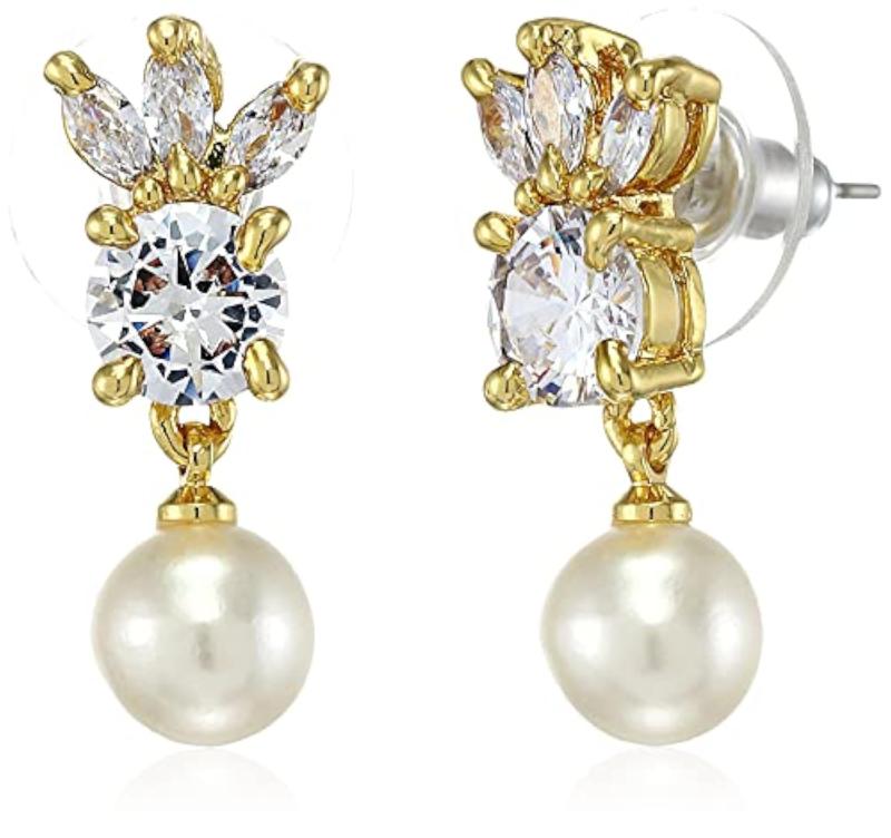 Elegant and luxurious earrings featuring sparkling CZ studs and pearl hangings.