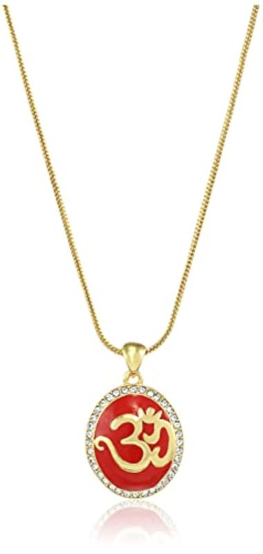 Elegant 24kt gold plated pendant featuring a divine red enamelled Om symbol. Comes with complimentary chain.