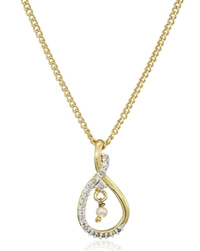 Elegant necklace set with 24Kt gold plating and sparkling American diamonds in an oval loop design.