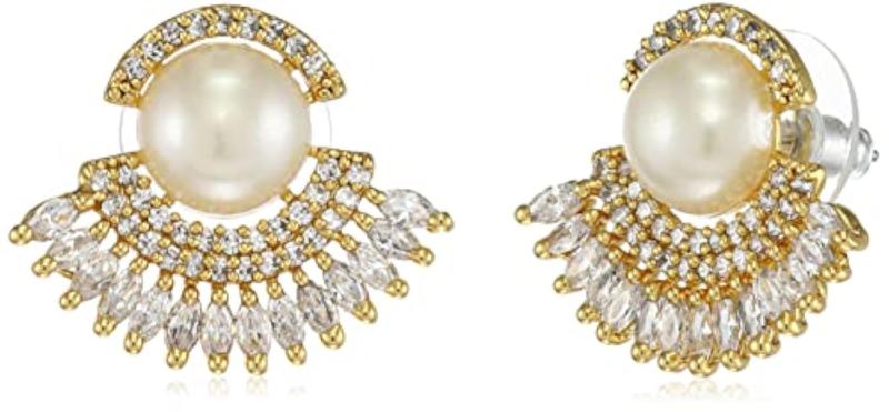 Elegant stud earrings featuring 24Kt plated CZ Kundan design with a beautiful pearl accent.