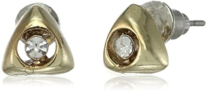 Add a touch of elegance to your look with these stunning pyramid stud earrings featuring a floating crystal. Made from 24kt plated metal, these earrings are perfect for any occasion.