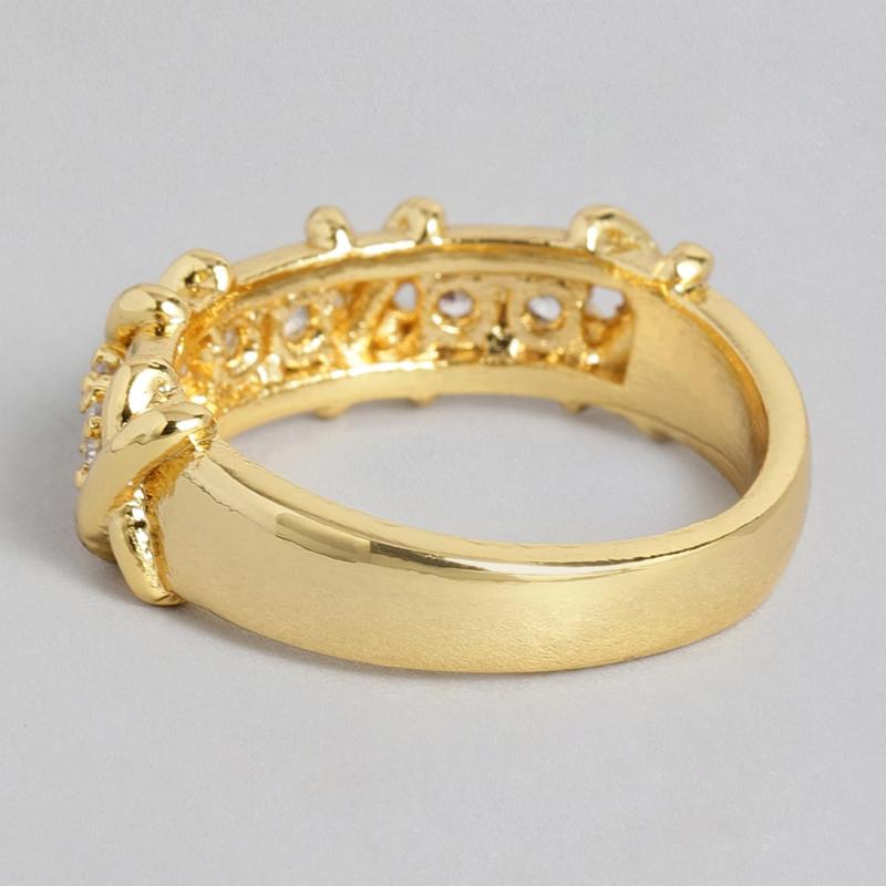 Add a touch of glamour with this stunning 24kt plated ring featuring fancy Austrian crystals. A perfect accessory for any occasion.