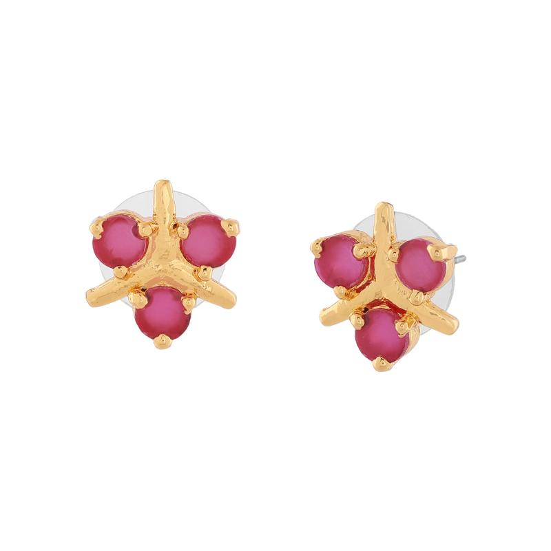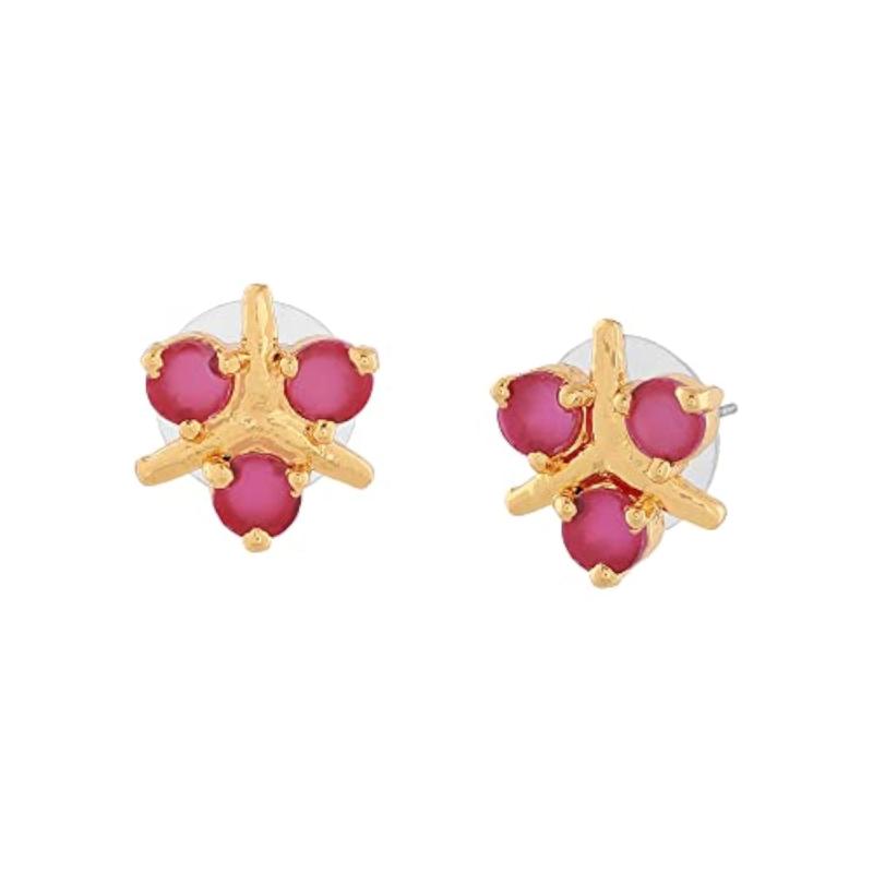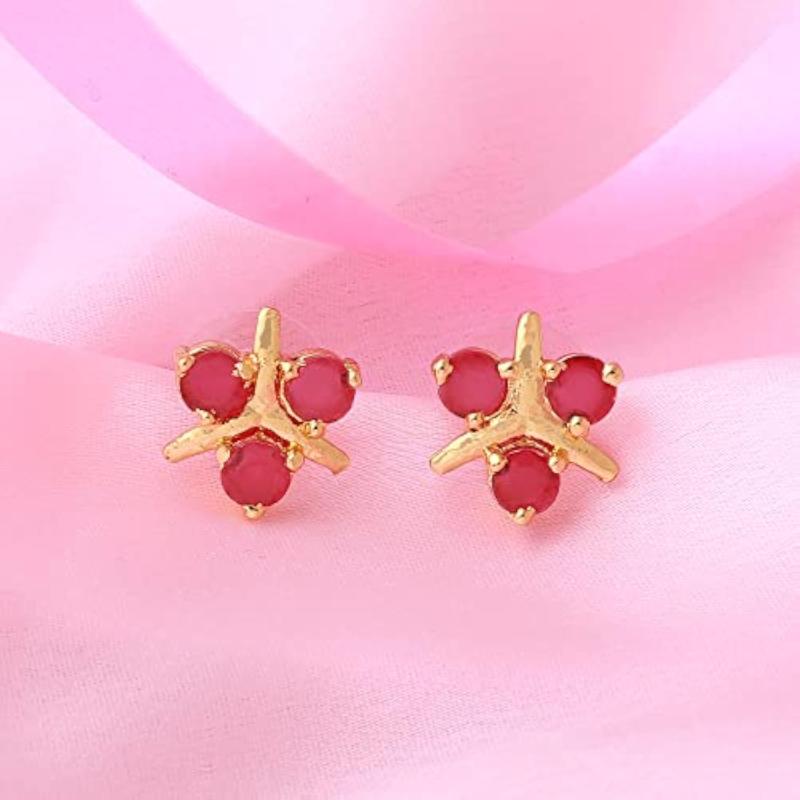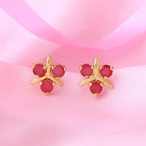 Add a touch of sparkle to your look with these stunning stud earrings. Featuring a floral design with stone-studded petals and a vibrant ruby cubic zirconia in the center.