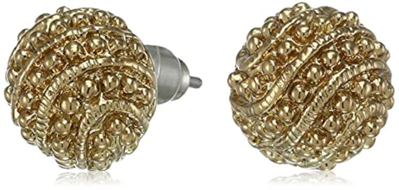 Add a touch of elegance to your outfit with these textured stud earrings featuring swirling hops design. Made with 24kt gold plating, these earrings will elevate your look.