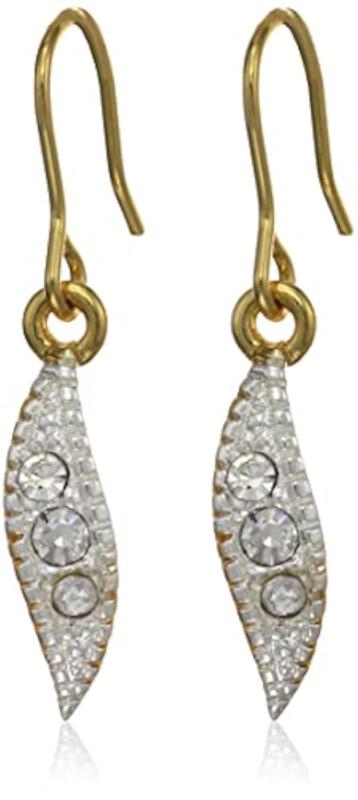 Elegant leaf design earrings featuring Austrian crystals in 24kt and rhodium plating.