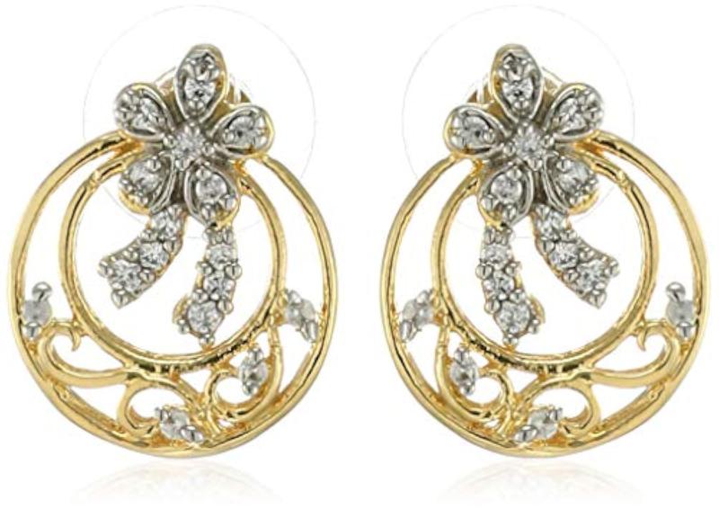 Elegant stud earrings with American diamond accents and intricate tendril design.
