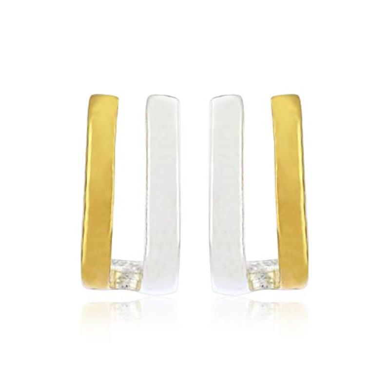 Elegant stud earrings featuring a combination of 24Kt and silver tone plating.