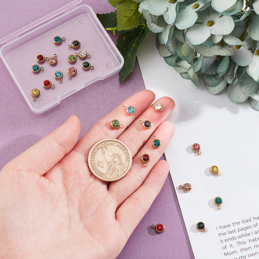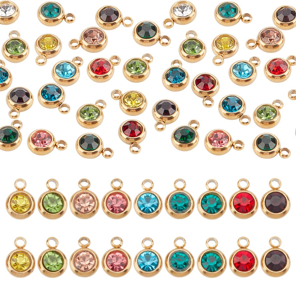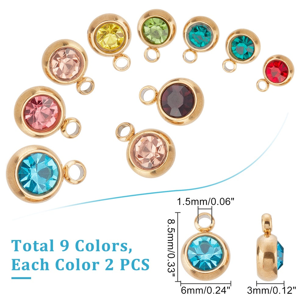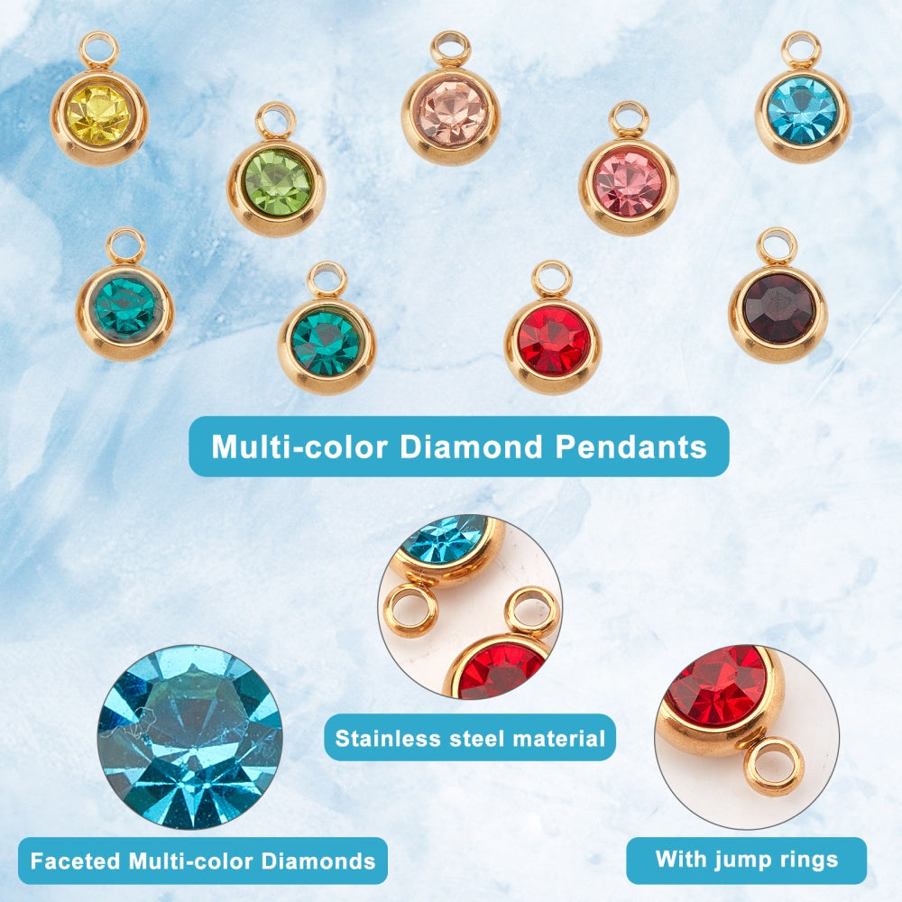 Enhance your DIY jewelry making with this set of 24 rhinestone charms in 12 vibrant colors. Perfect for necklaces and bracelets.