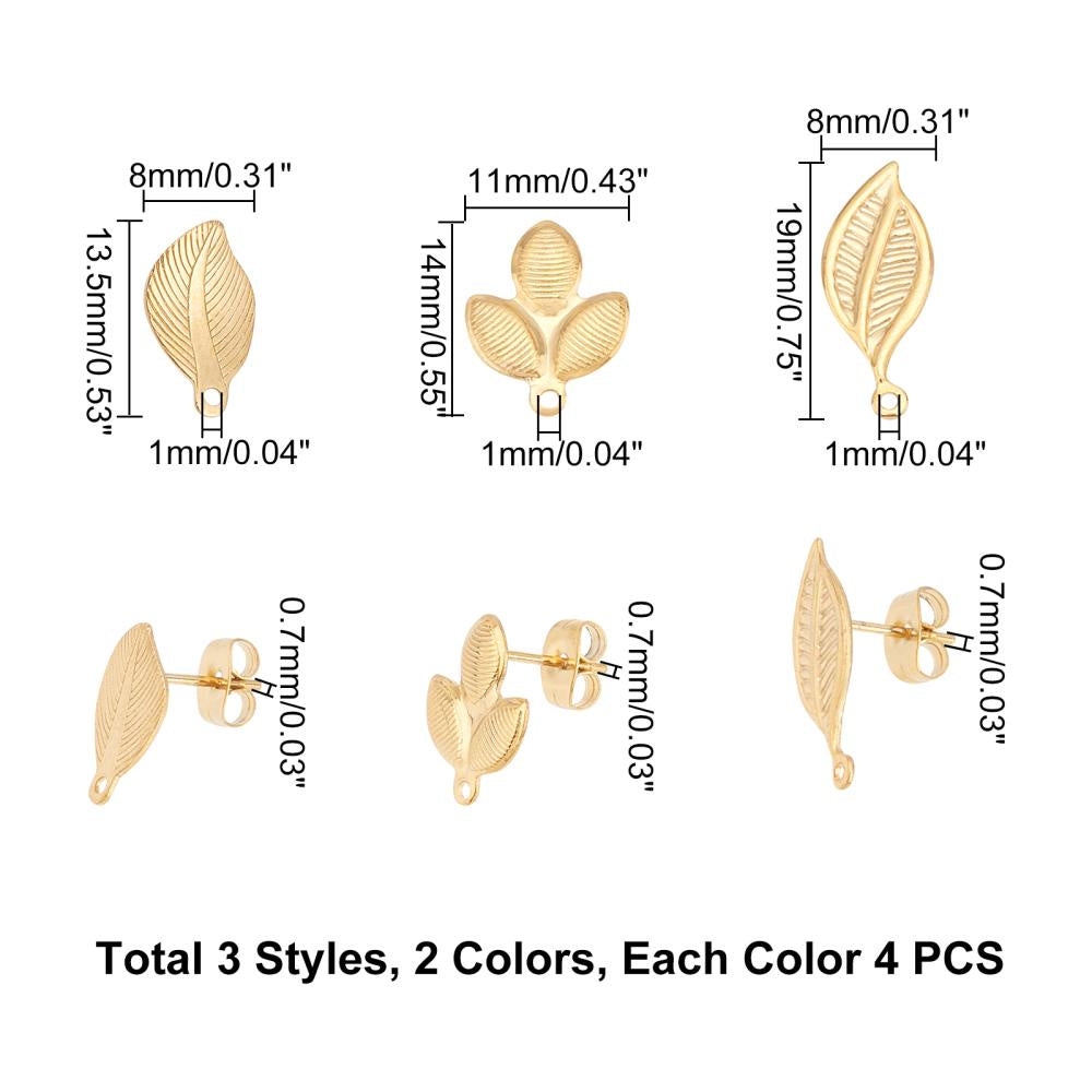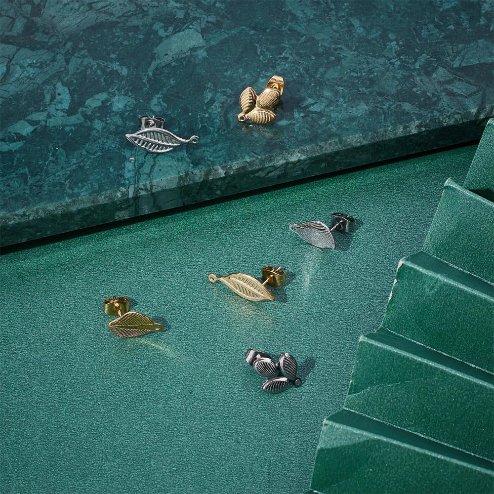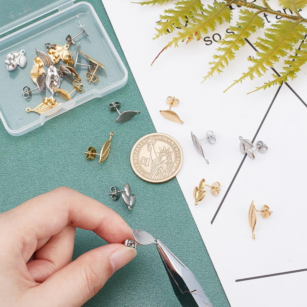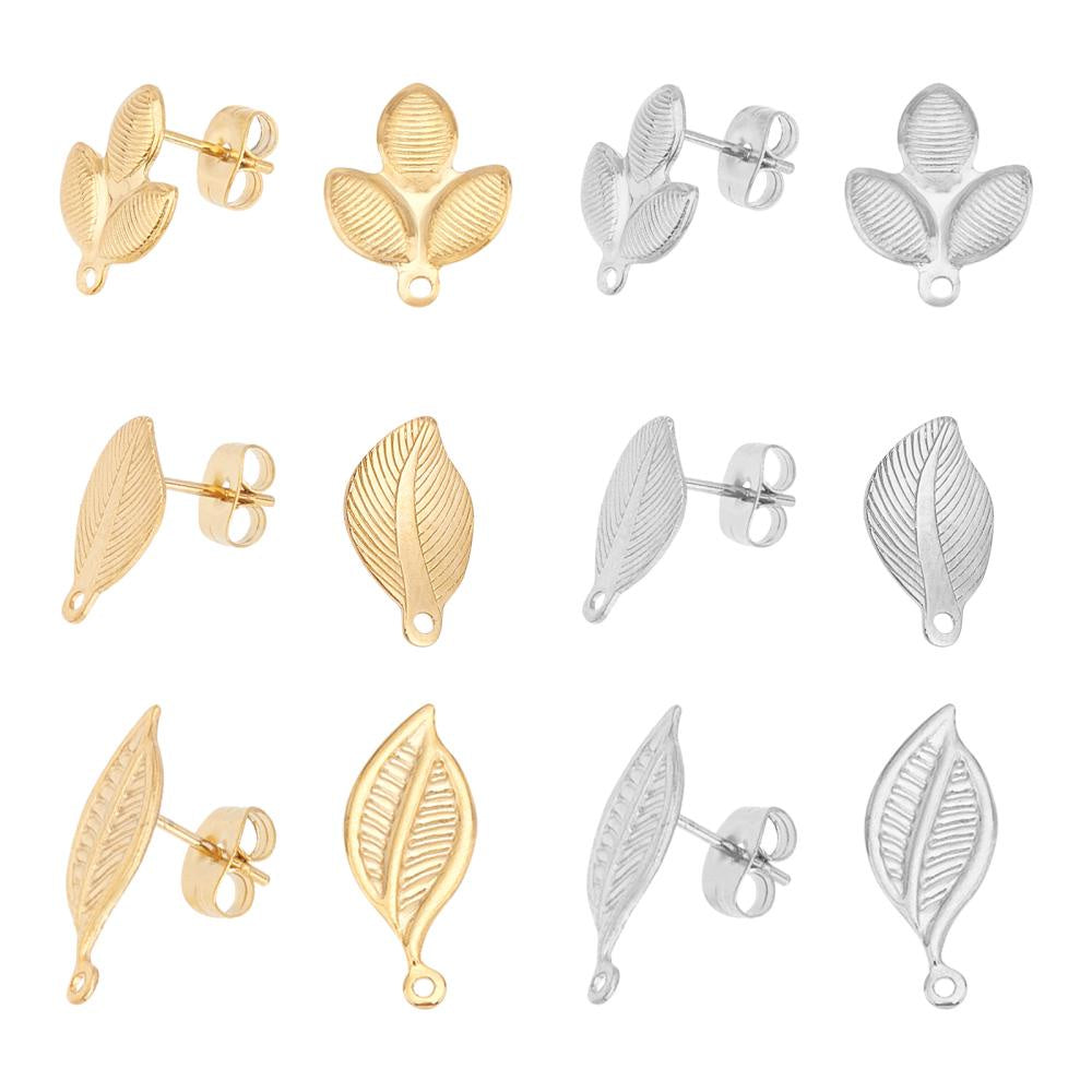 Get this set of 24 leaf stud earrings with hypoallergenic 0.7mm pin crafted from stainless steel. Perfect for DIY jewellery projects.