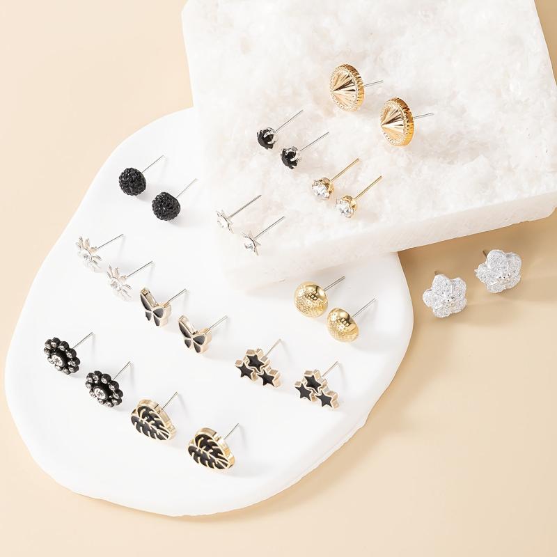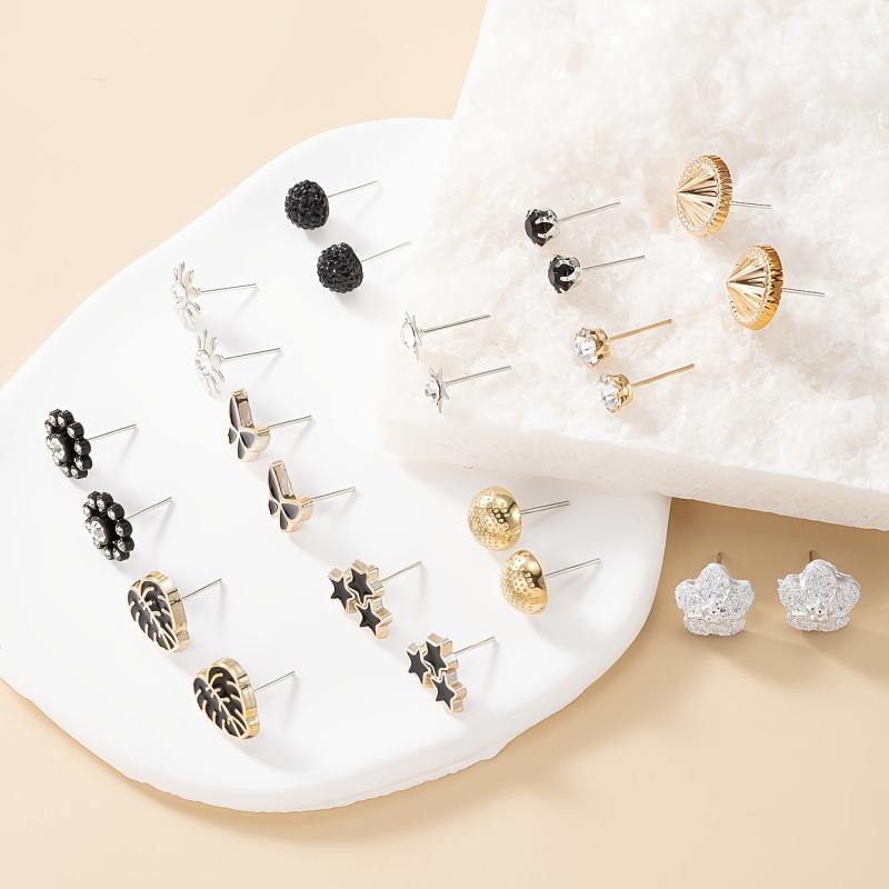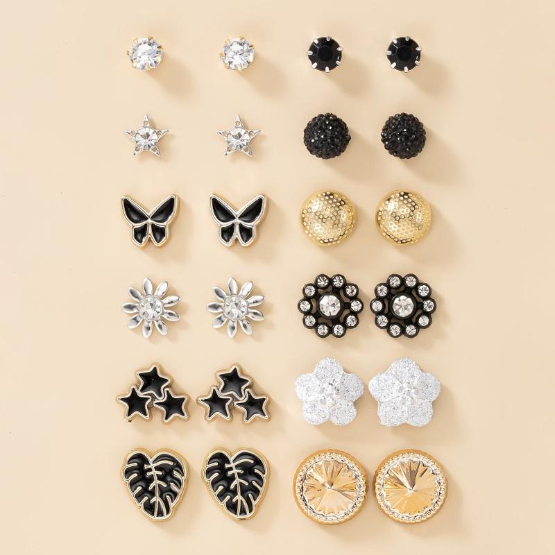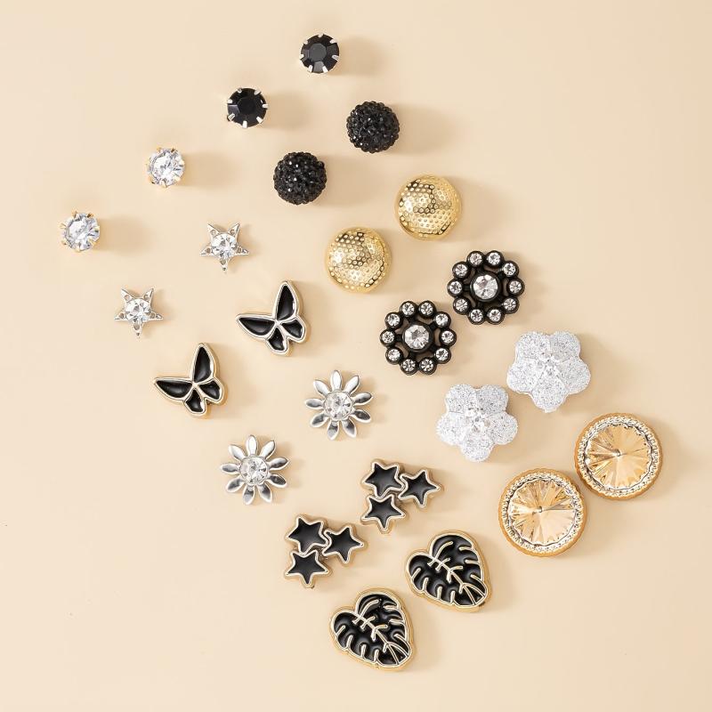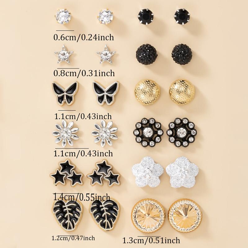 Elevate your look with these stunning metal earrings adorned with large rhinestone butterfly, star, and flower studs. Perfect for casual attire and a thoughtful holiday gift.