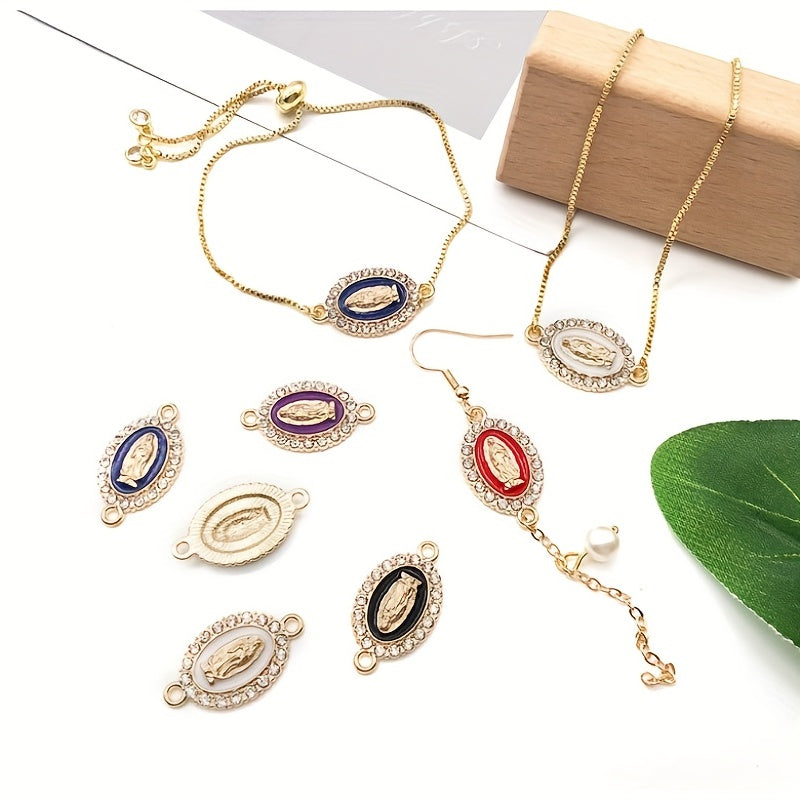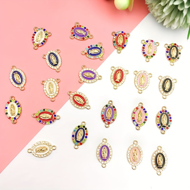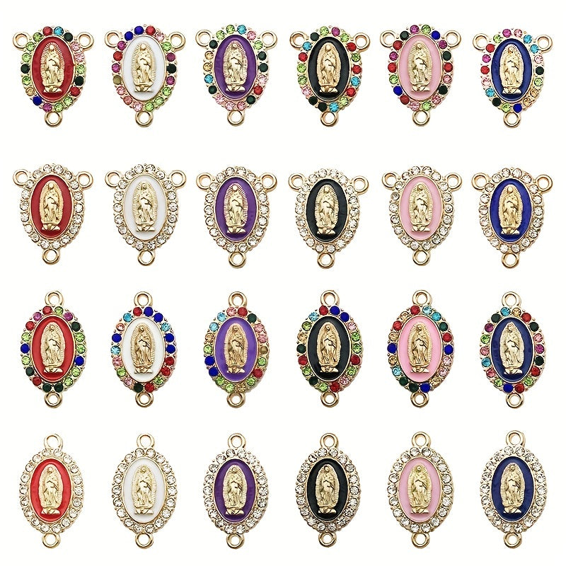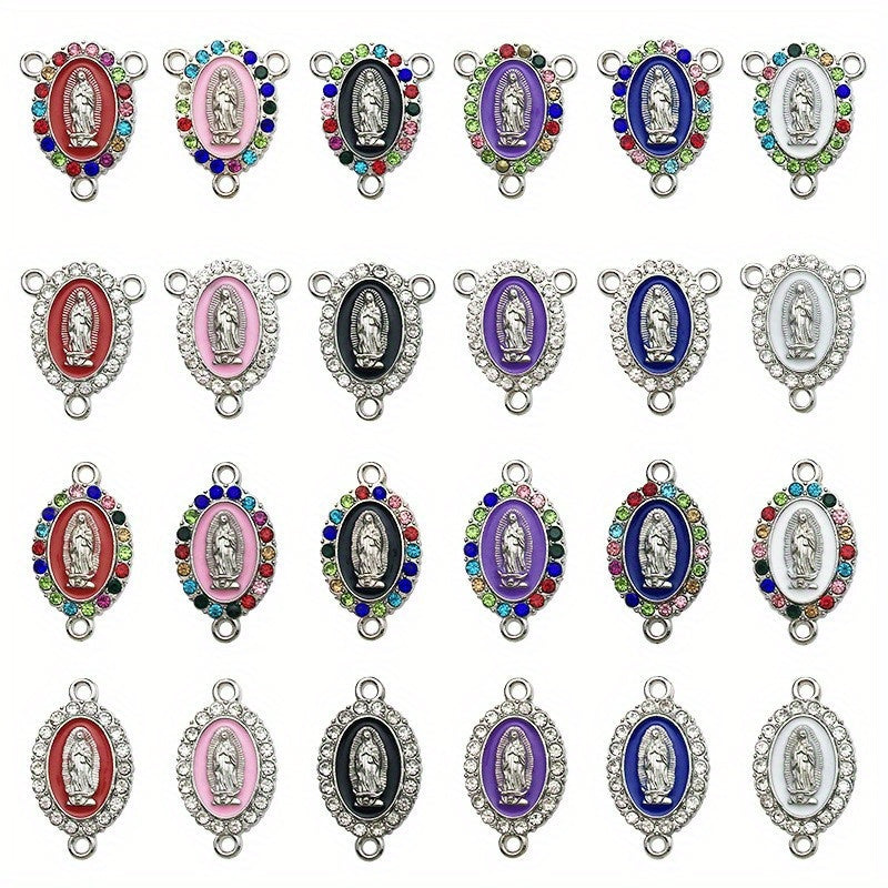 Enhance your jewelry with these 24pcs rhinestone studded Virgin Mary pendants charms. Perfect for DIY projects and jewelry making.