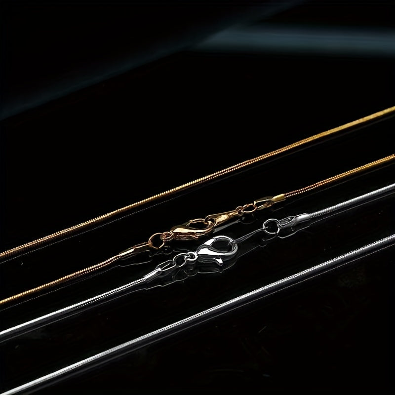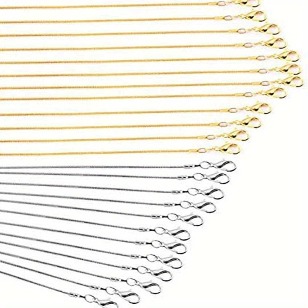 This set includes 24pcs snake chain necklaces with lobster clasps for jewelry making, available in golden or silvery color. The chains measure 45.72cm and 50.8cm each, with 12pcs of each size.