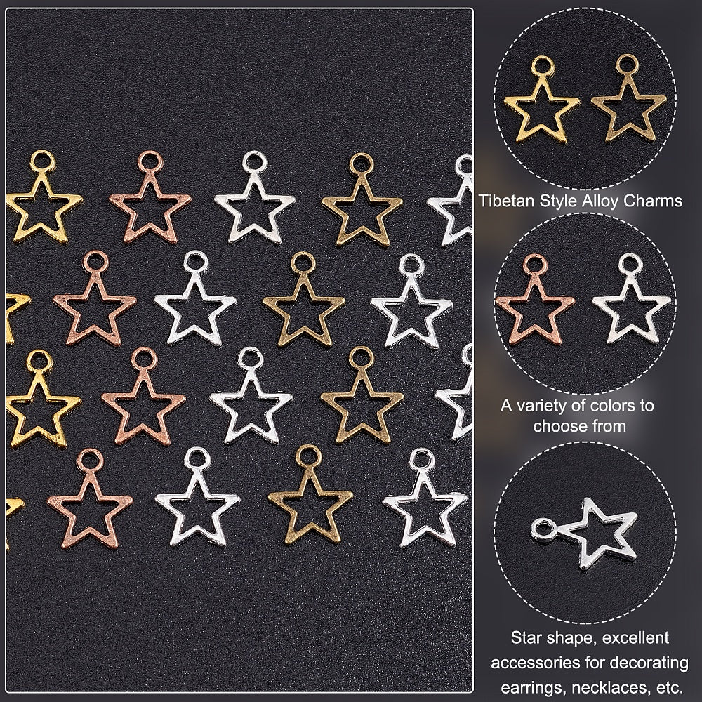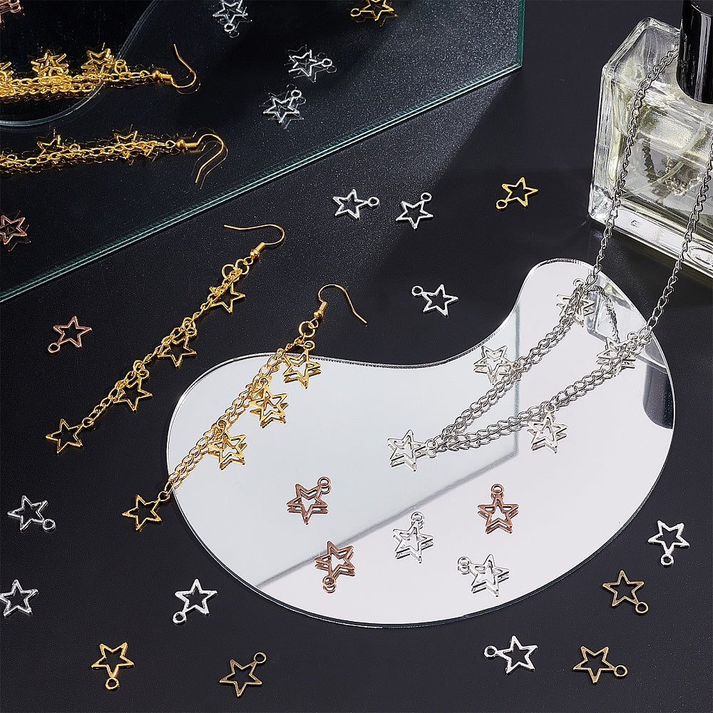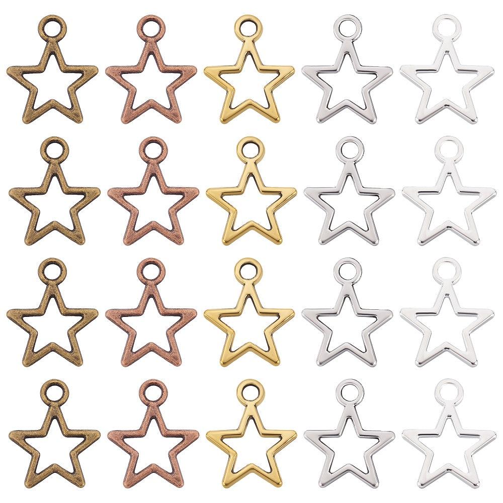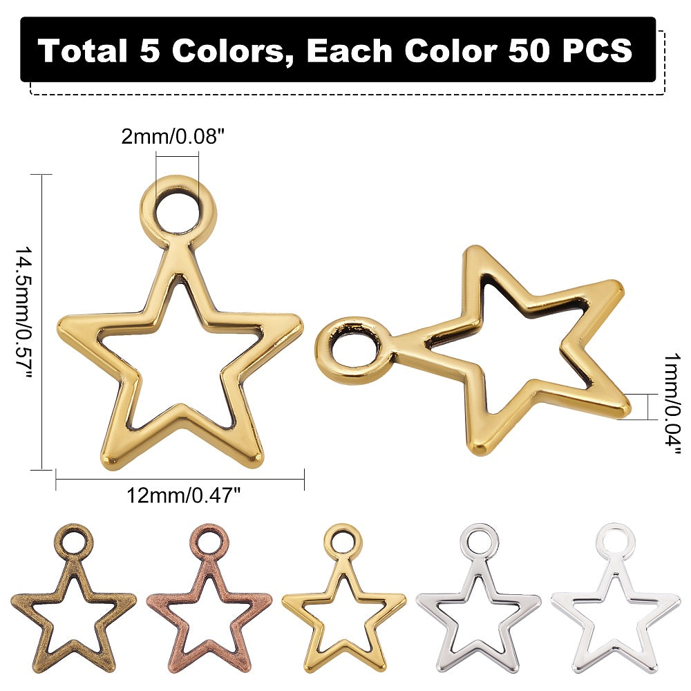Get a bulk pack of 250 hollow star pendants with open back bezels, perfect for creating unique bracelets and necklaces. Each pentagram charm measures 12mm (0.47 inches) in size.
