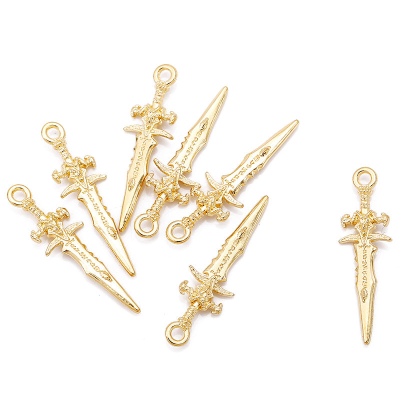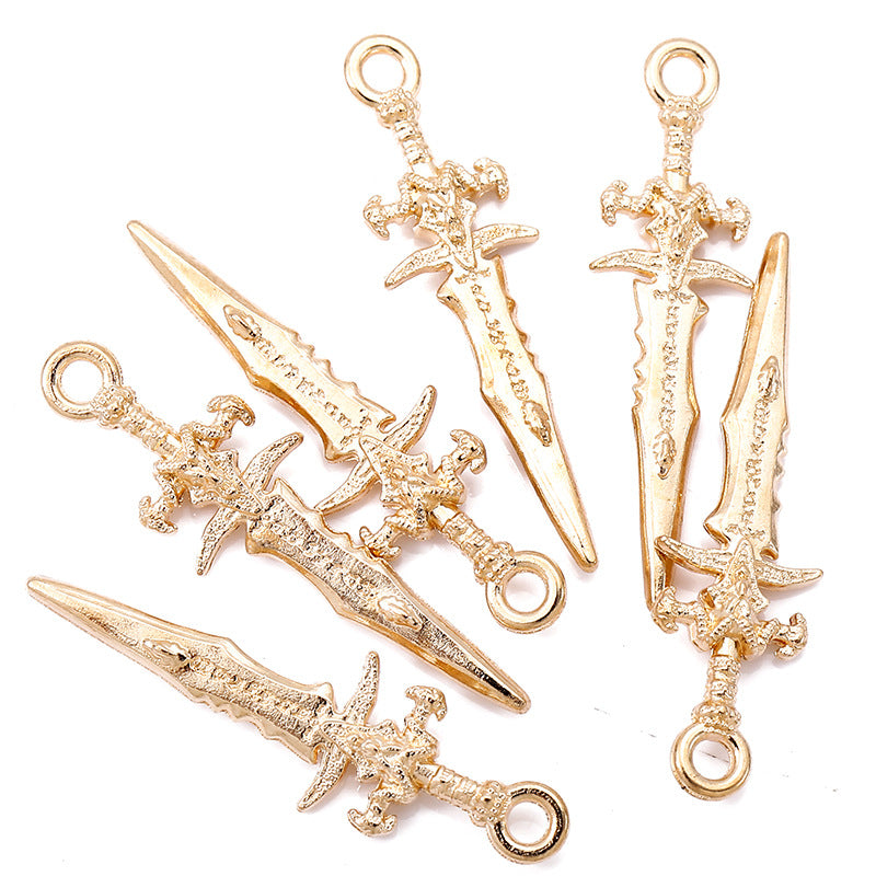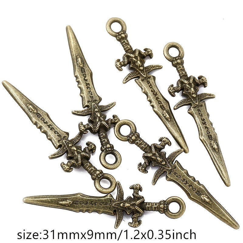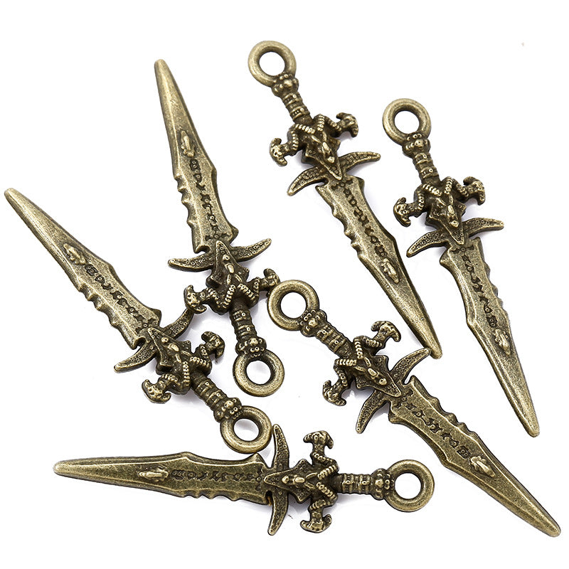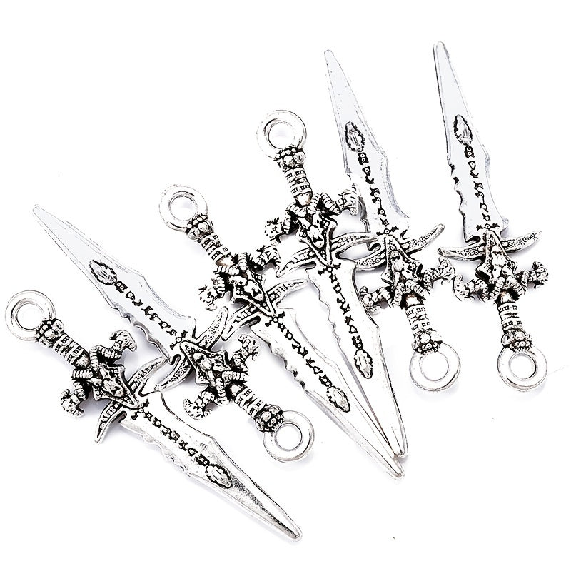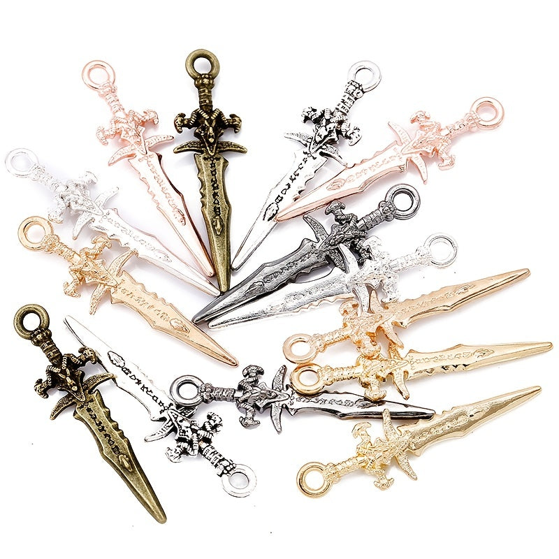 Add a touch of medieval charm to your jewelry creations with these antique sword charms. Perfect for creating unique necklaces and bracelets.