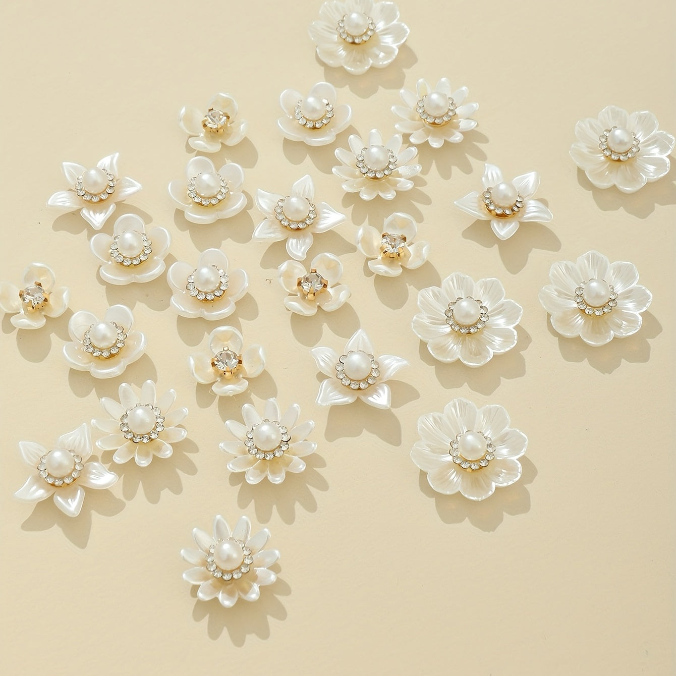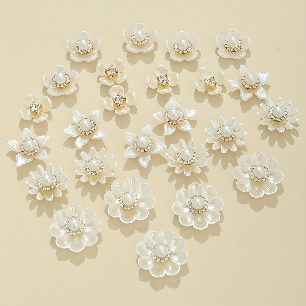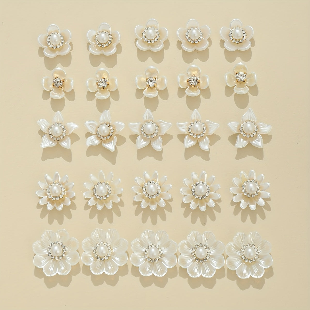Enhance your style with this set of 25 petal pearl charm ear stud earrings and hair accessories. Perfect for DIY projects and creating a round pearl necklace.